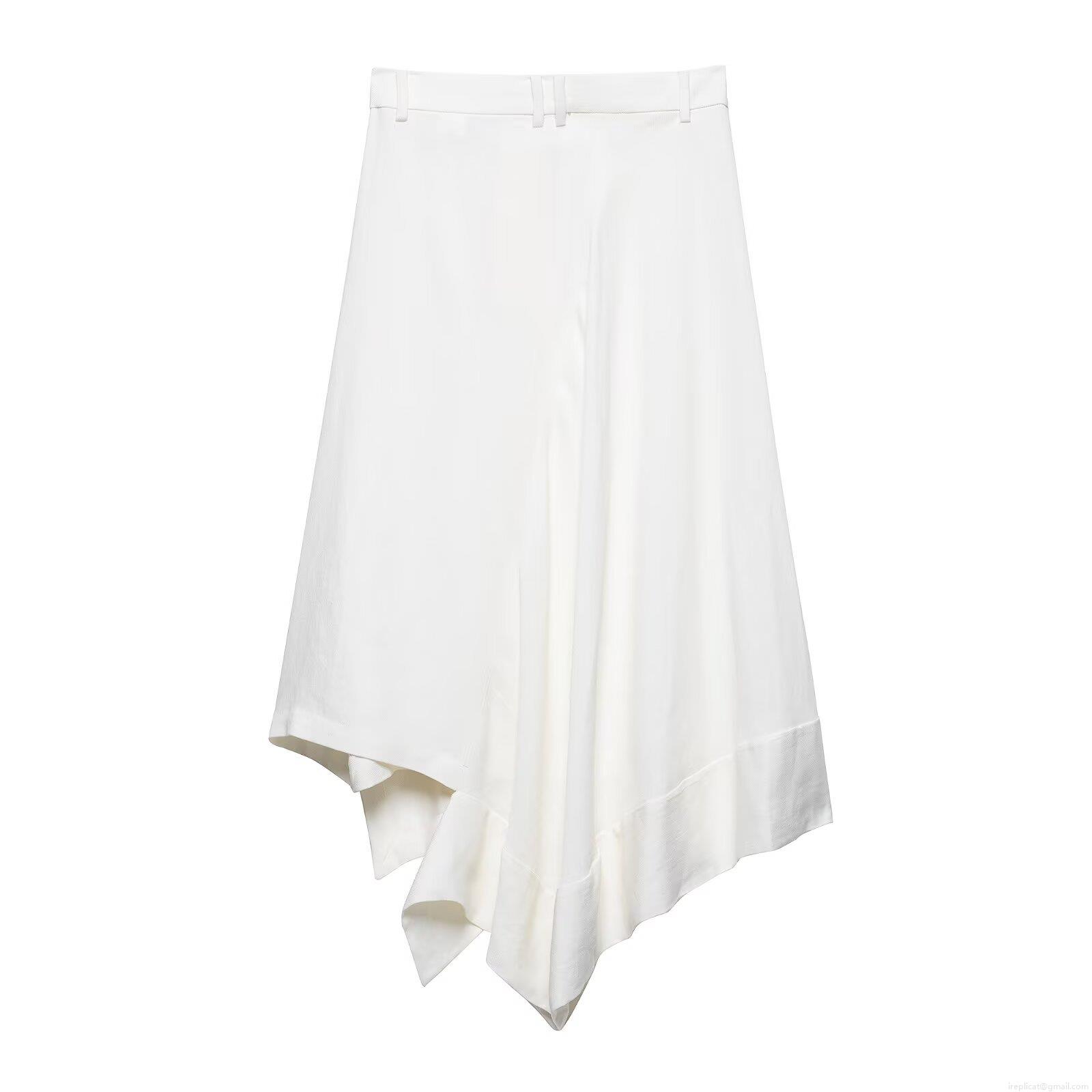 • Sexy Women High Waist Asymmetric Ruffle Skirt White Polyester Midi Bodycon Skirt For Streetwear Party Date Slim Fit Street Style Pure Color Bottom