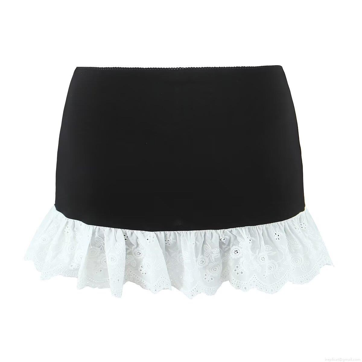 Sexy Women Lace Patchwork Mini Skirt With Inner Safety Shorts Fashion Bow Decor High Waist Tight Short Skirt For Club Streetwear Party