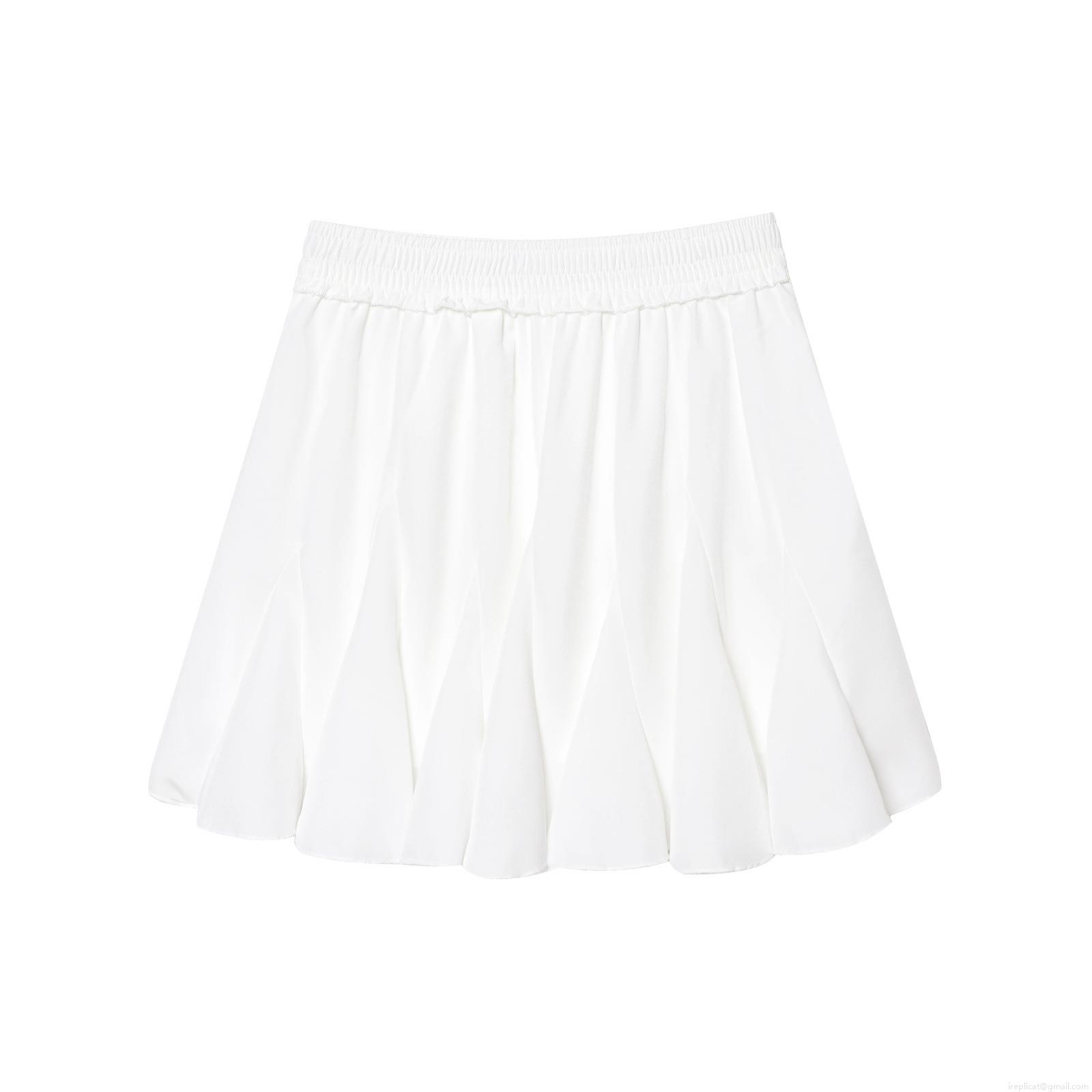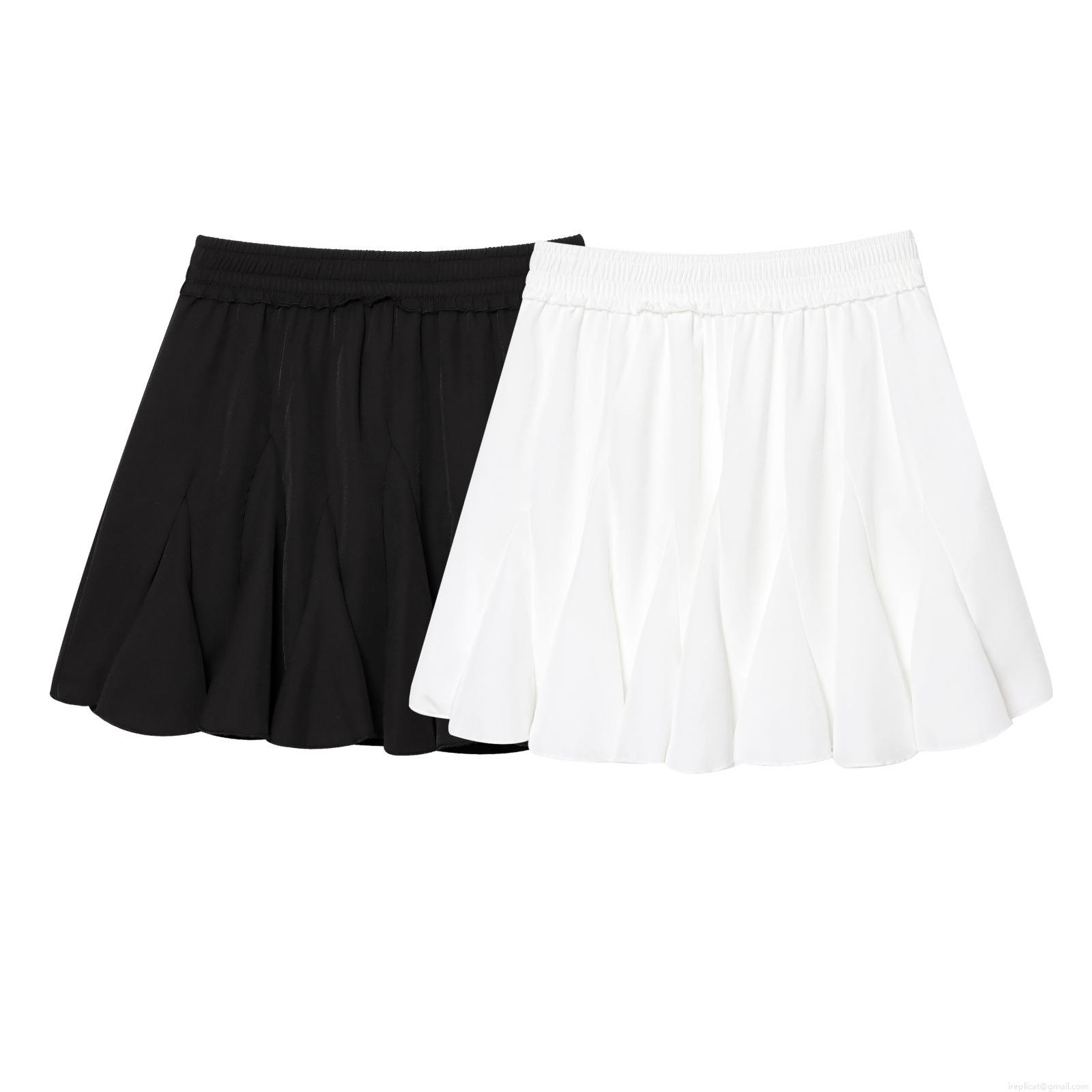 • Summer Women's High Waist Pleated Mini Skirt 100% Polyester Solid Color Elastic Waistband Short Skirt Streetwear Casual Fashion Bottoms for Ladies