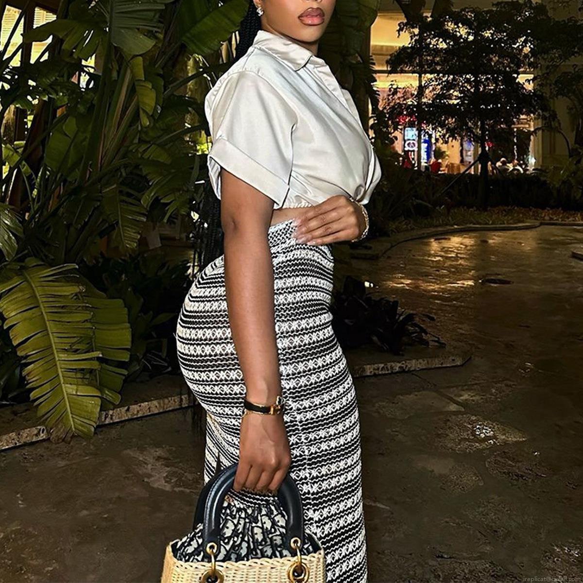 Women Bohemian Knitted Striped Mermaid Skirt High Waist Slim Fit Crochet Long Skirt With Tassels Elegant Beachwear Vacation Bottoms