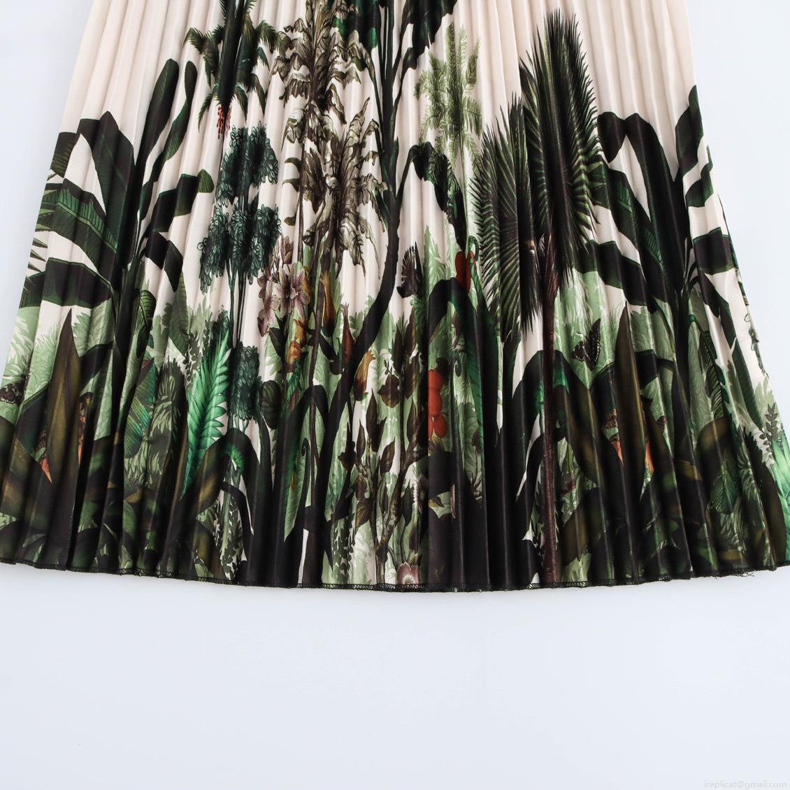 Women Bohemian Tropical Plant Print Pleated Midi Skirt Polyester High Waist Beach Vacation Long Skirt With Invisible Zipper