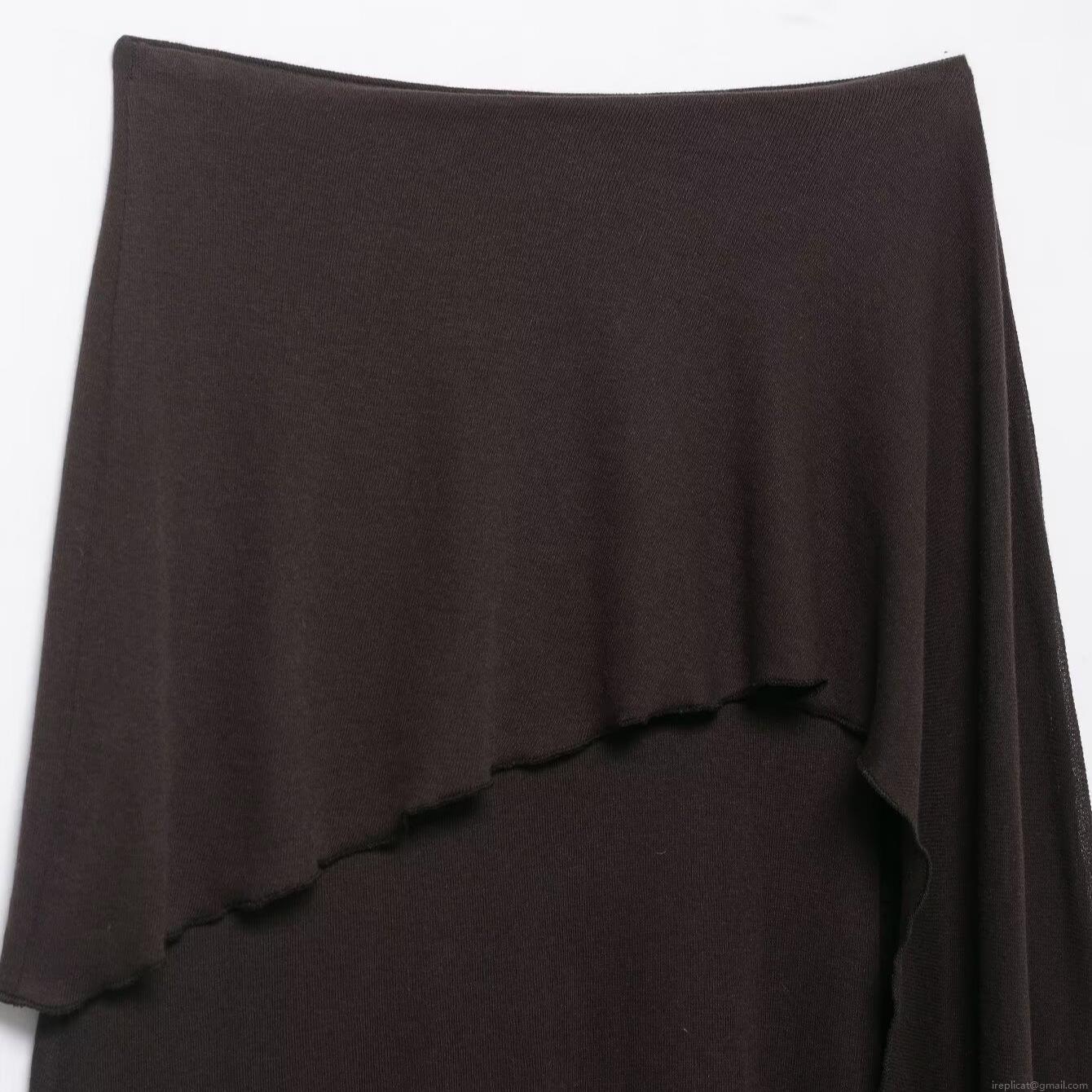 • Women Elegant Asymmetric Midi Skirt Patchwork Knitted Spandex Woven Fabric Irregular Hem Casual Skirt For Daily Dating Lady