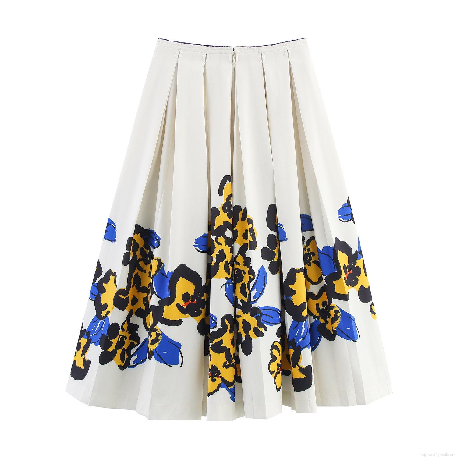 • Women Elegant Floral Print Pleated Midi Skirt High Waist A-Line Polyester Spandex Summer Casual Dating Office Fashion Swing Bottoms