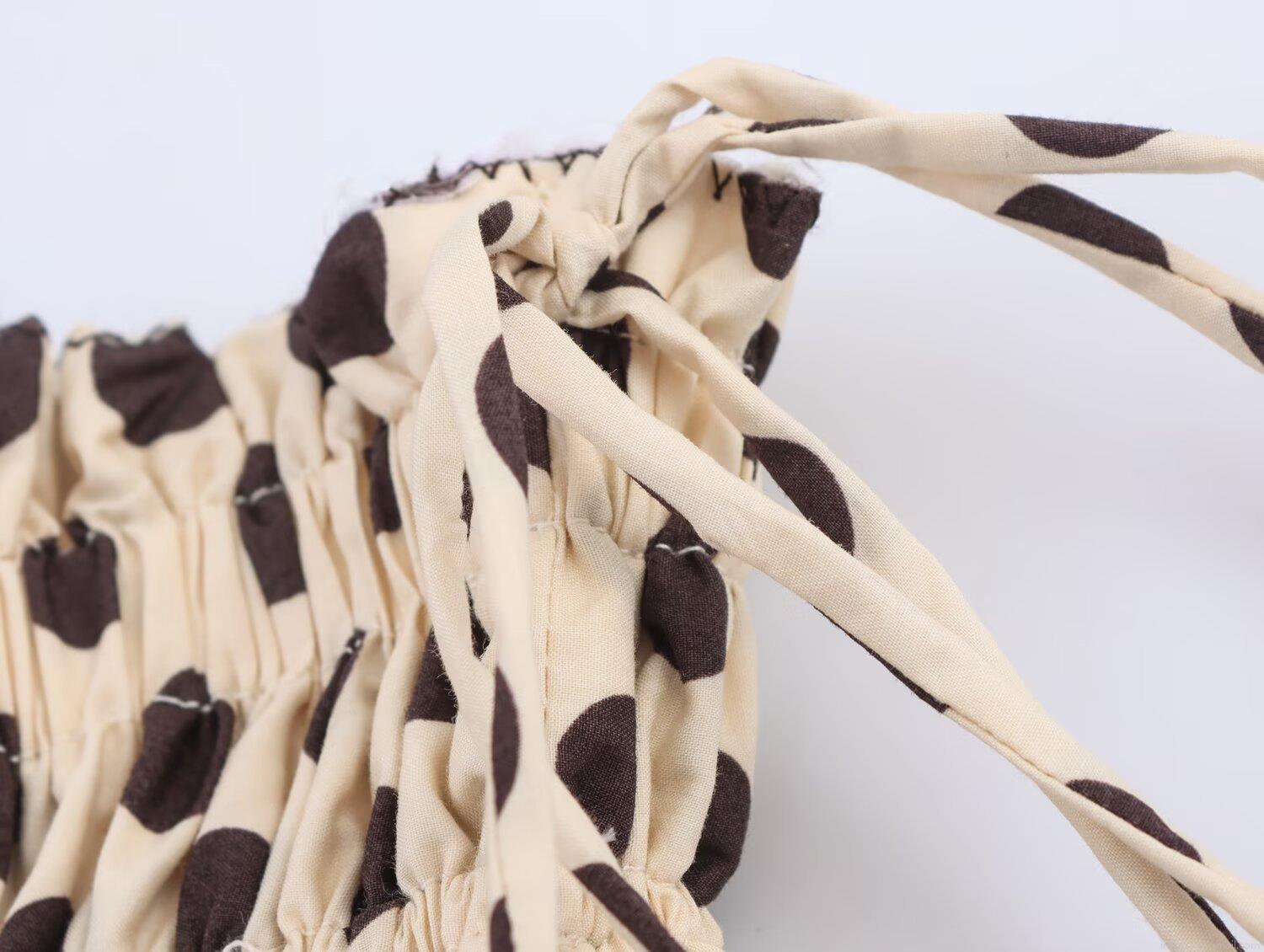 Polka Dots, Drawstring, Lace, Elastic Waistband, Pleats