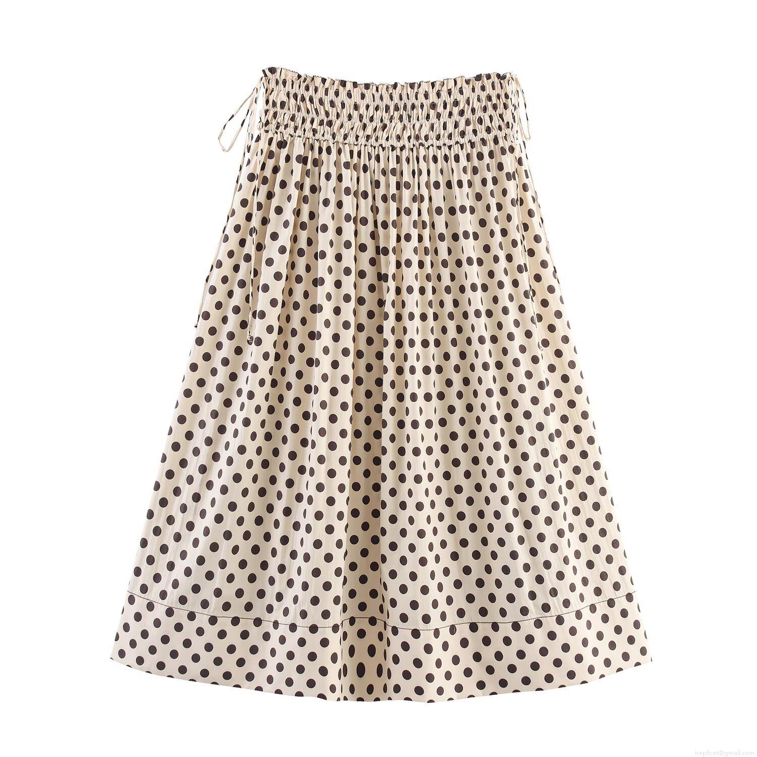 • Women Elegant Polka Dot Midi Skirt High Waist Elastic Drawstring A-Line Flowy Skirts For Women Commute Casual Polyester Spandex Summer Spring Fashion Bottoms