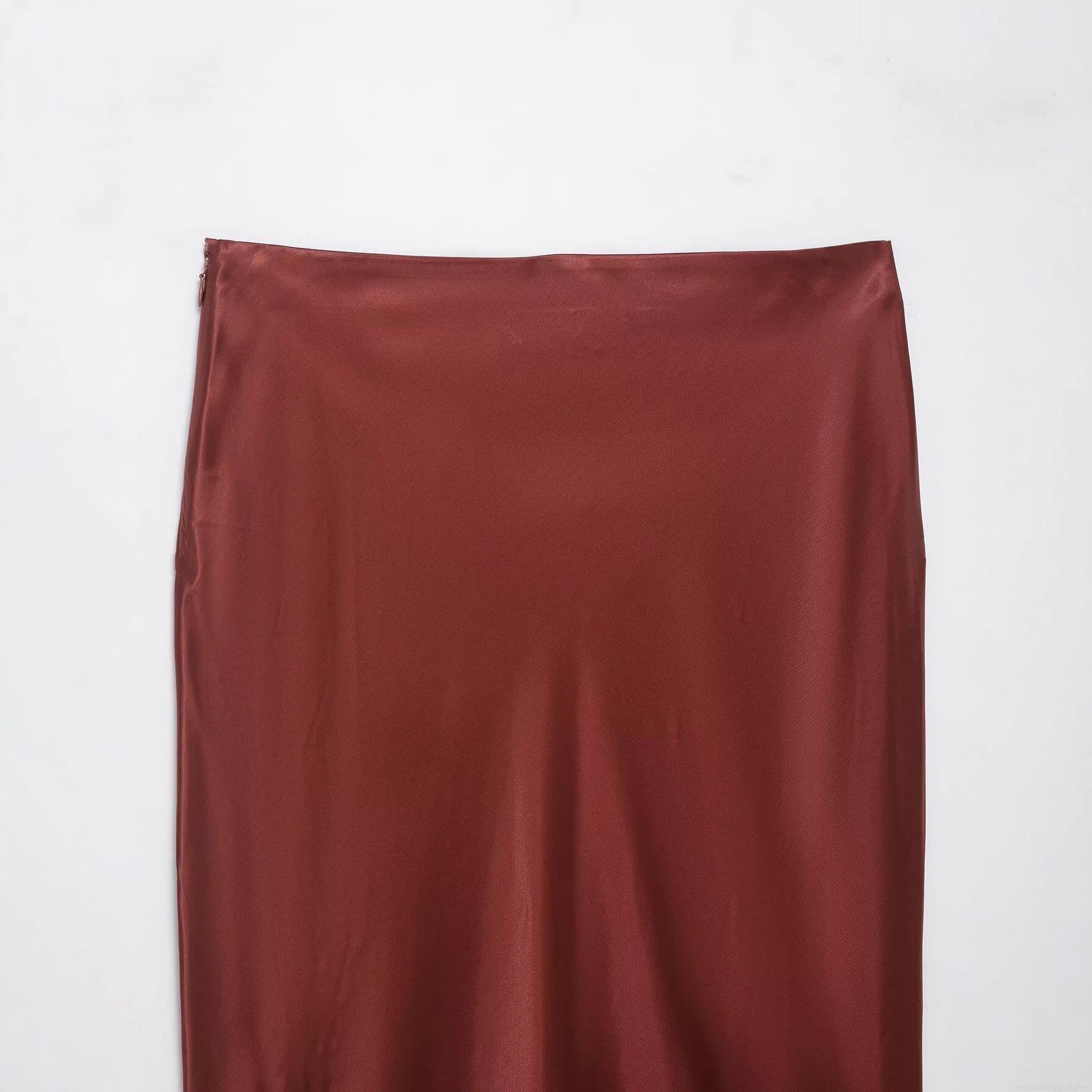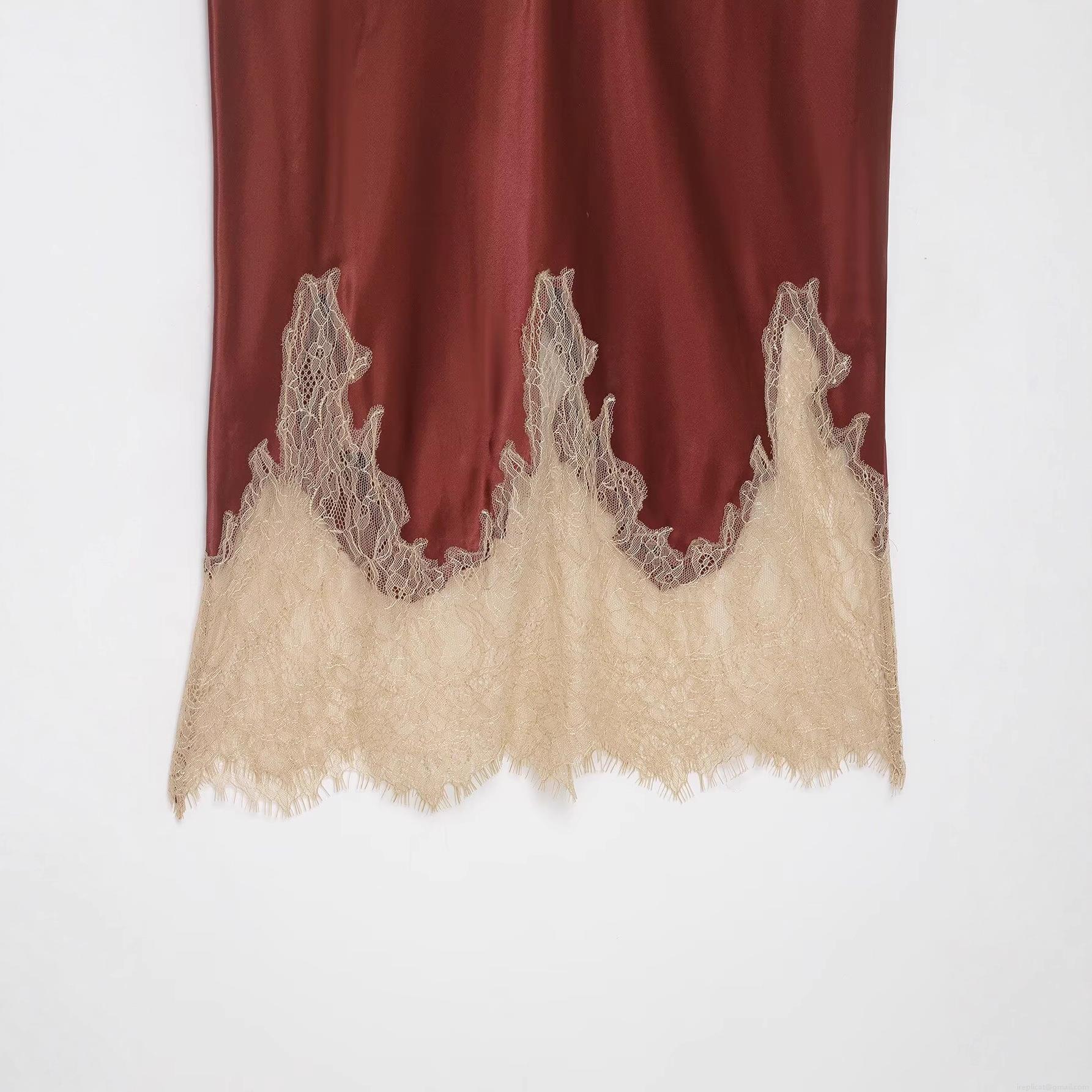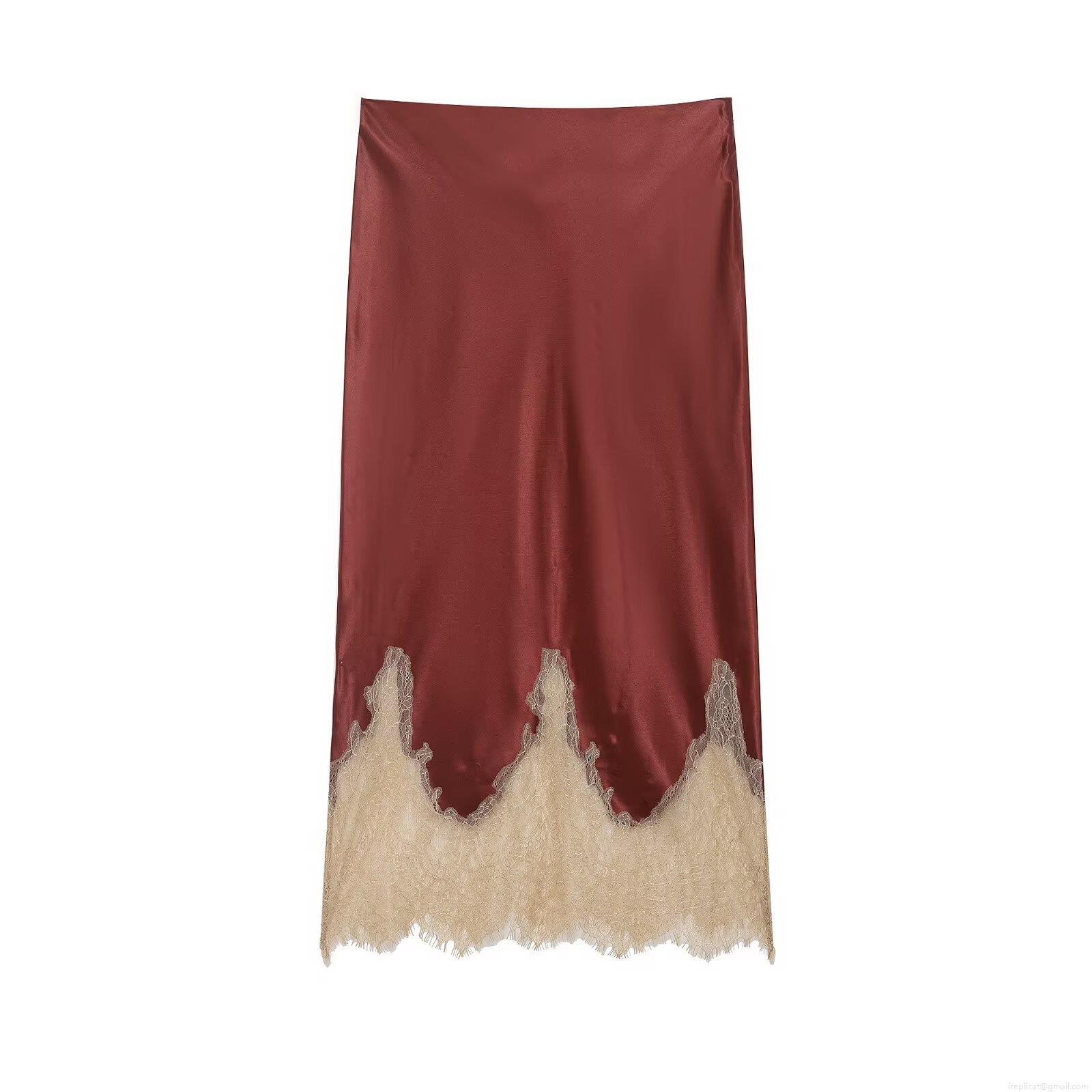 • Women Elegant Satin Midi Skirt With Scalloped Lace Trim Hem High Waist A-Line Silk Like Polyester Solid Skirt For Party Streetwear Chic Fashion Bottoms