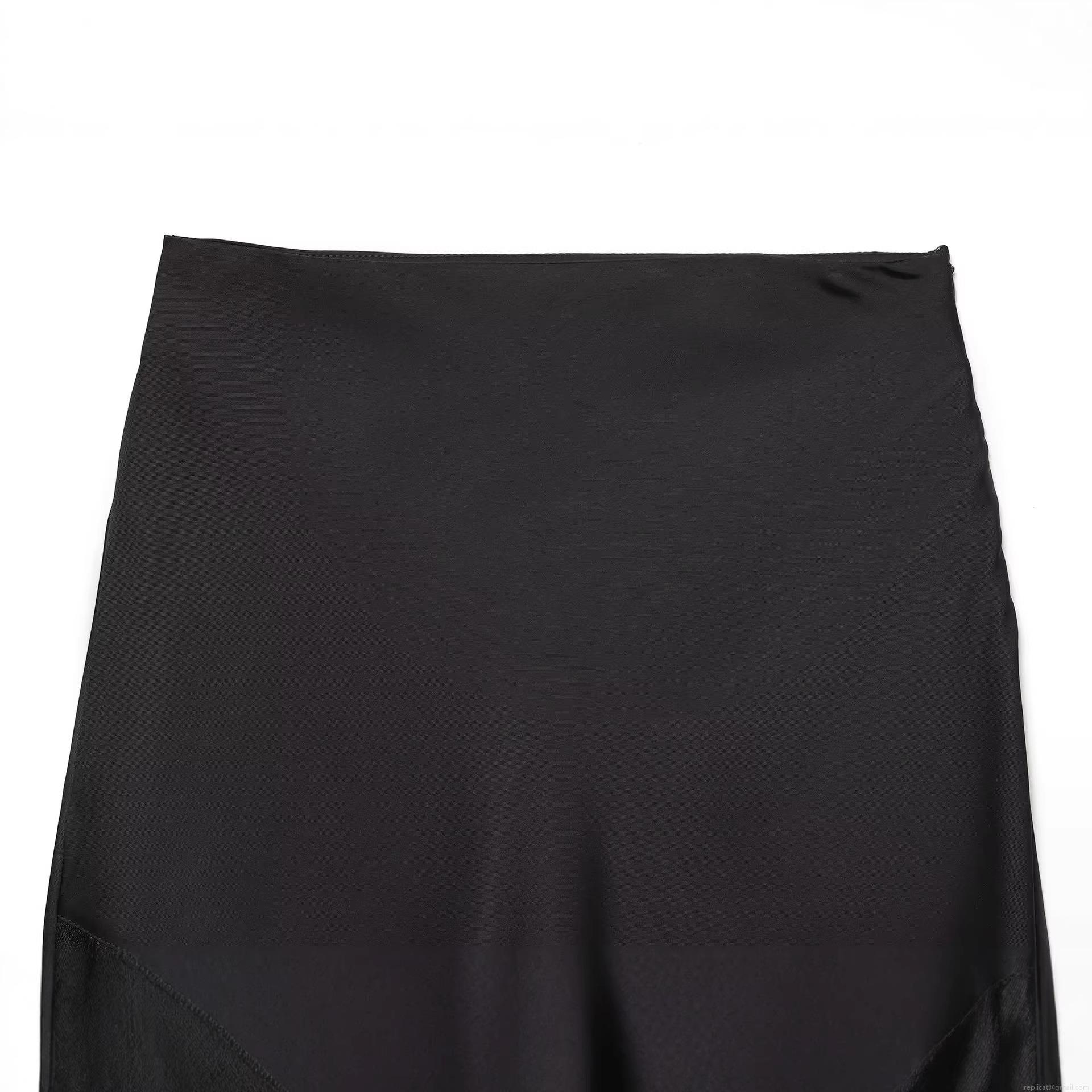 • Women European Fashion Black Irregular Hem Lace Patchwork Midi Skirt Elegant Summer Streetwear High Waist Polyester Skirt Casual Chic Party Wear