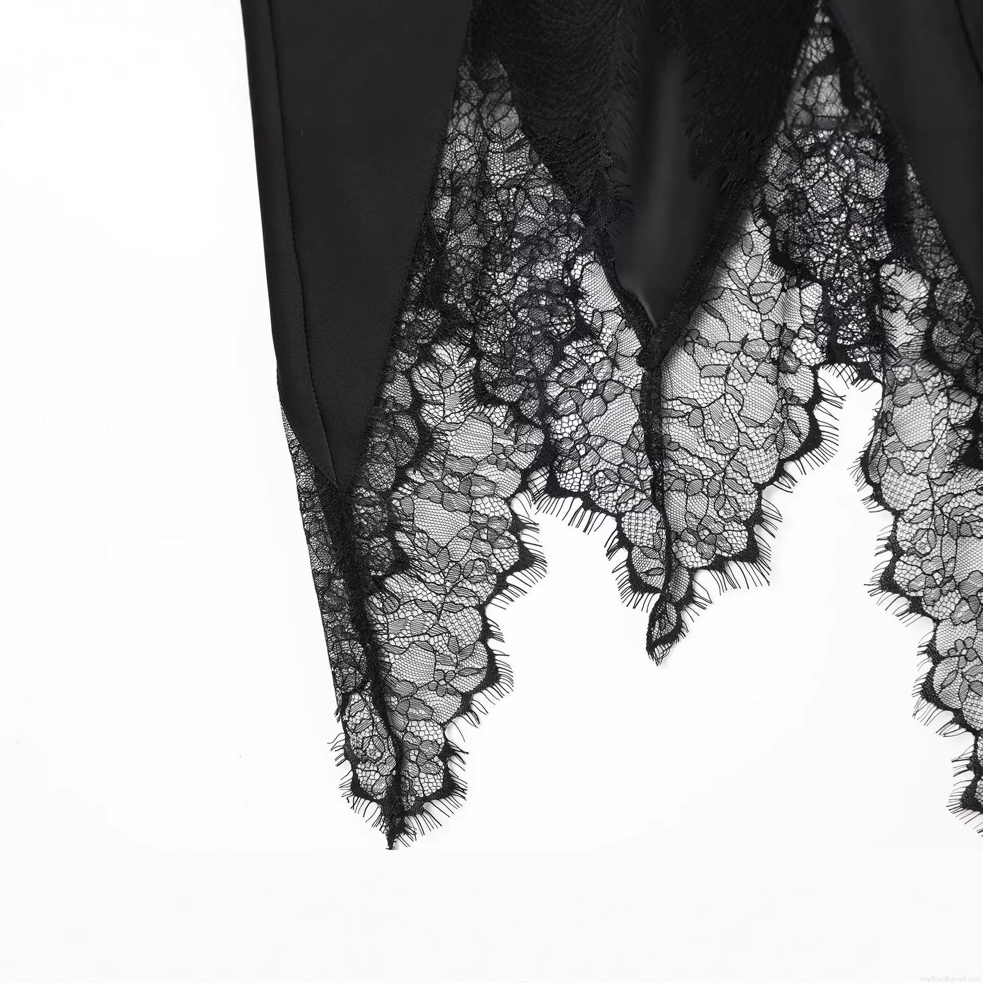 Solid Color, Splice, Lace, Irregular Hem, See-through Lace