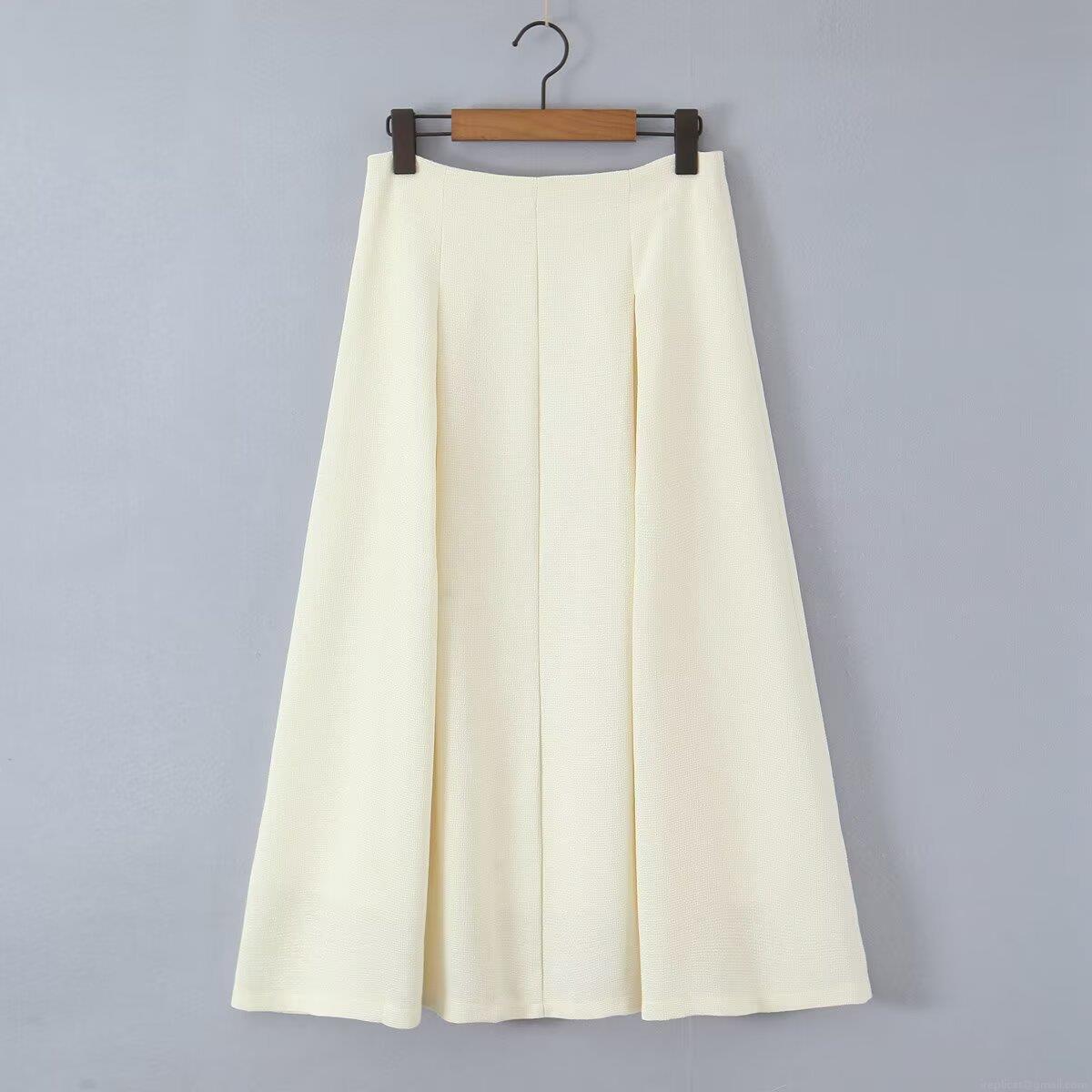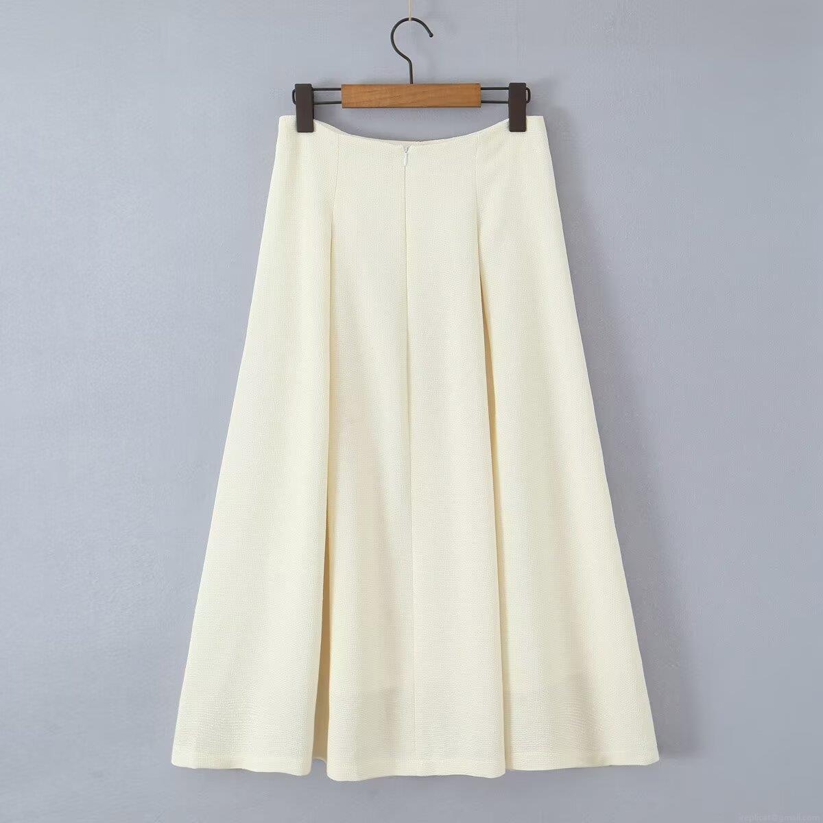 • Women European Style A-Line Midi Skirt High Waisted Solid Color Textured Polyester Long Skirt Elegant Loose Casual Streetwear Skirt
