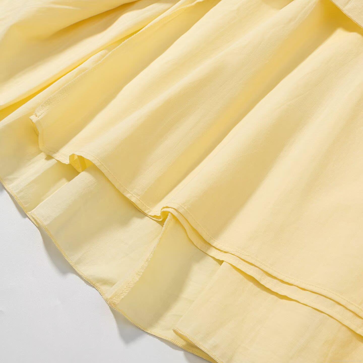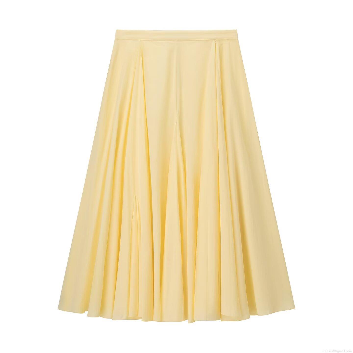 • Women Fashion High Waist Pleated Midi Skirt Solid Color Yellow A-Line Swing Skirt Polyester Chic Bottoms For Women Daily Vacation Party Wear