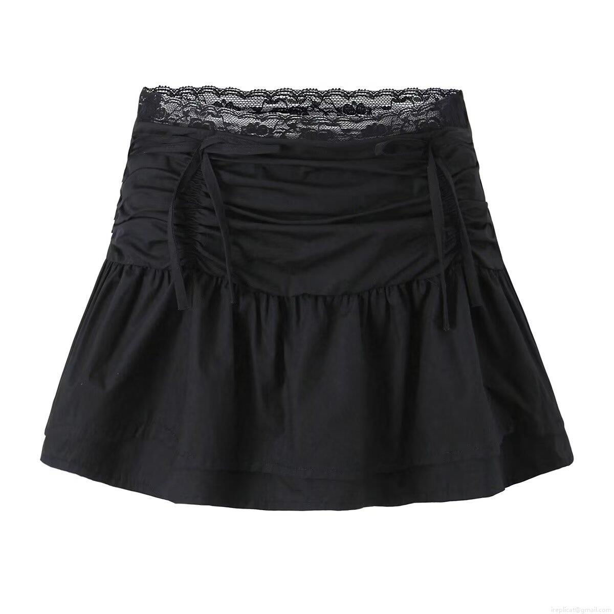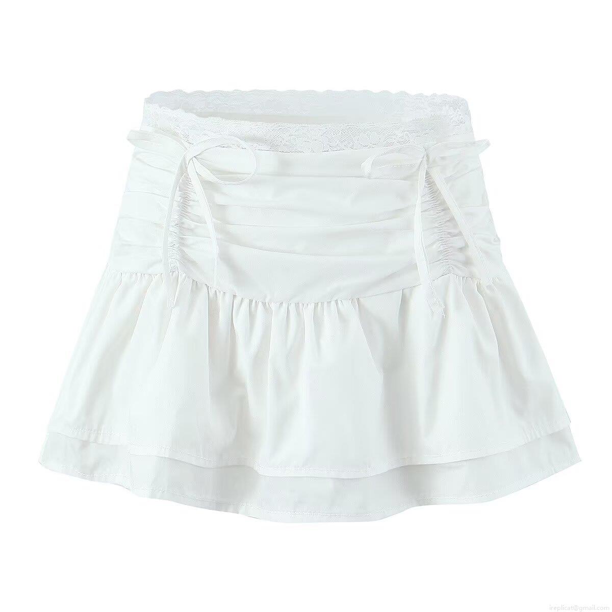 • Women Fashionable 100% Cotton Mini Skirt With Lace Trim Sexy Drawstring Ruched Ruffle Hem Skirt For Party Club Streetwear Lady Clothing