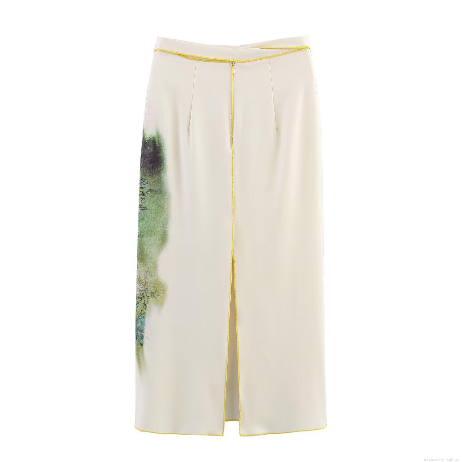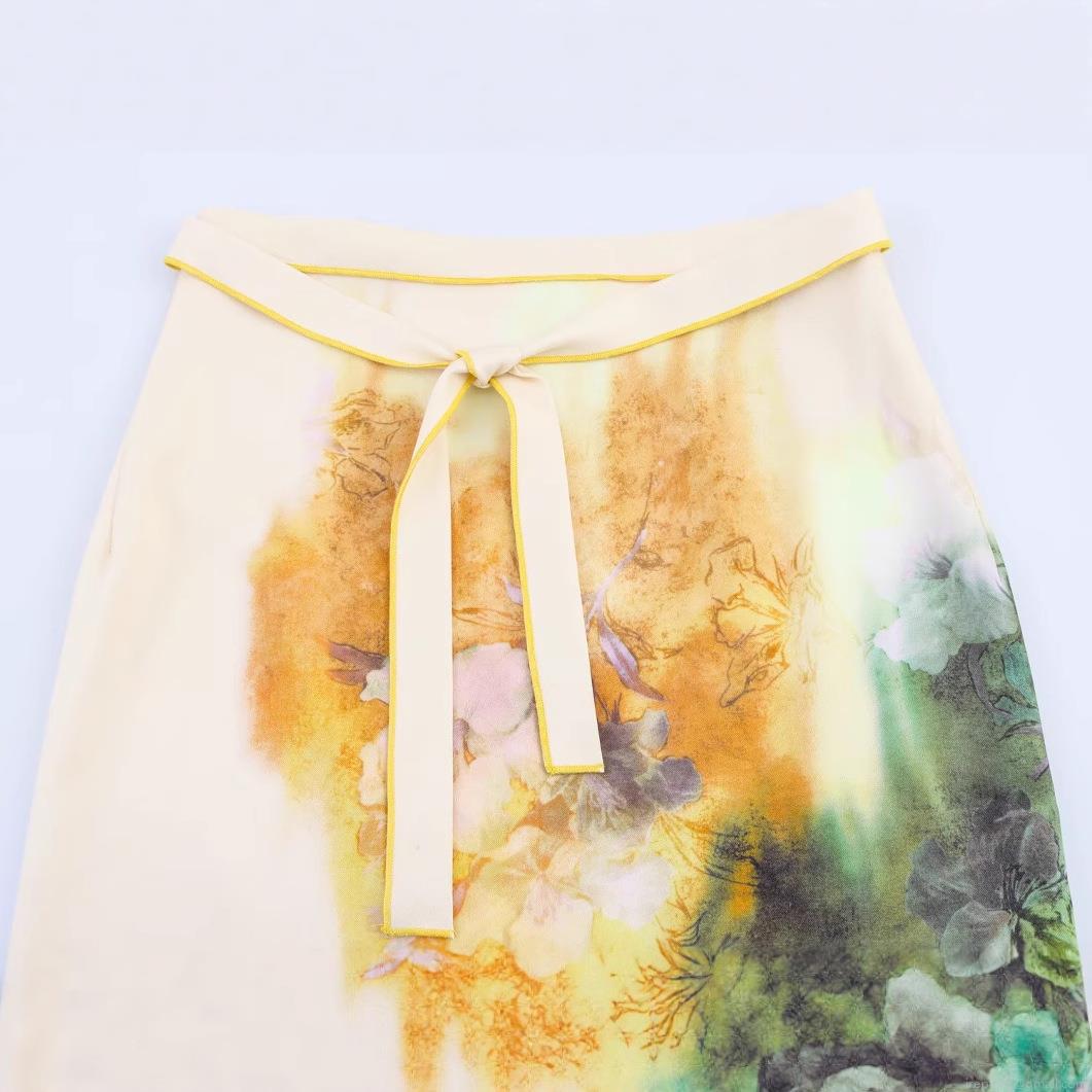 Printing, Lace, Forked, High-waisted, Ink Wash Texture, Edge Binding Process, Abstract Flowers, Artistic Blending