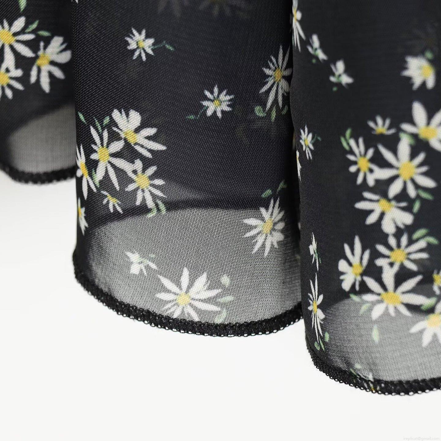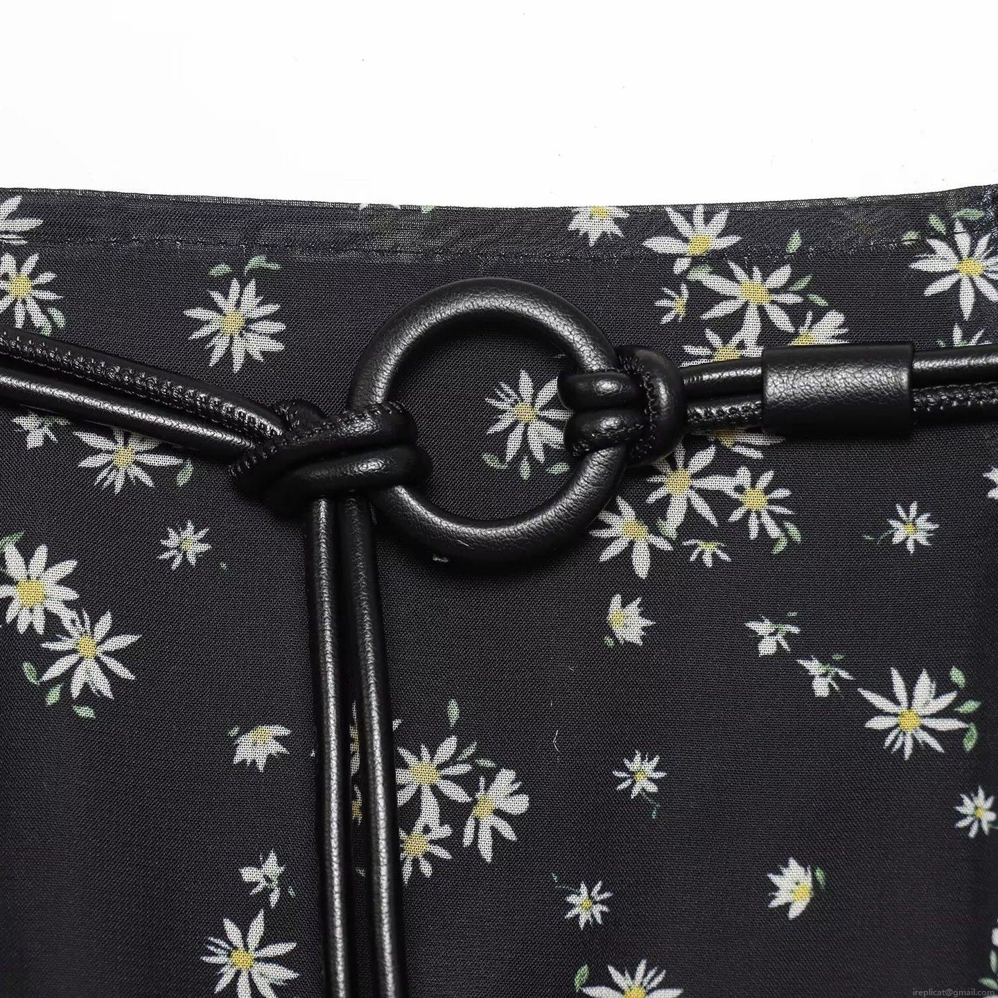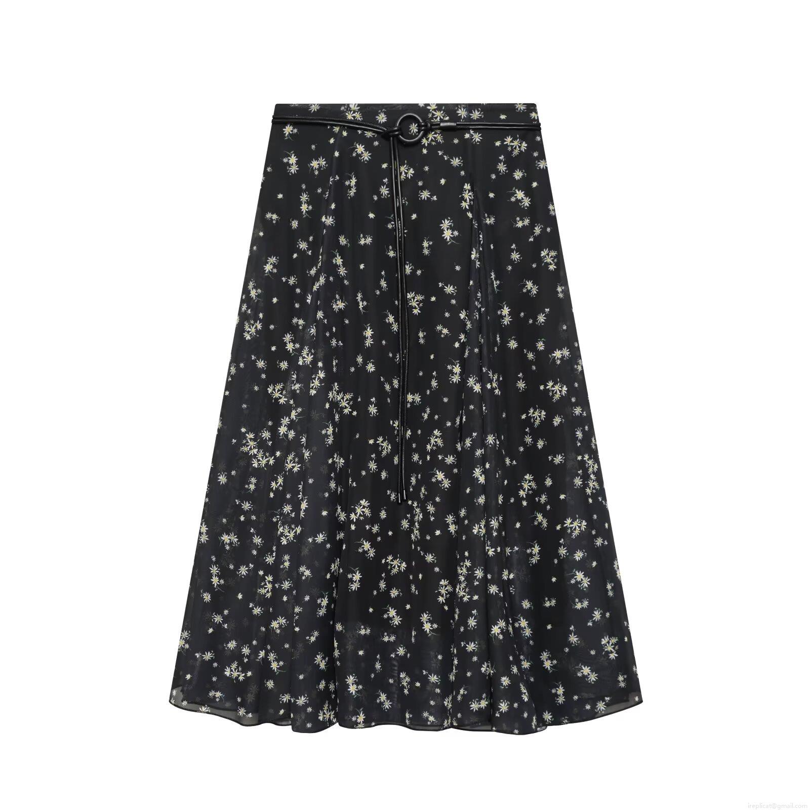 • Women French Sweet Daisy Floral Print Midi Skirt High Waist A-Line Chiffon Skirt With Belt Elegant Daily Dating Long Skirt For Lady