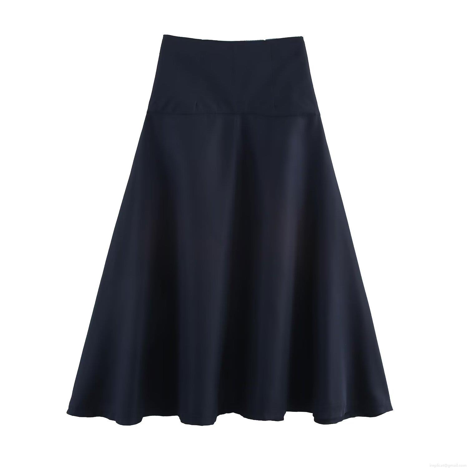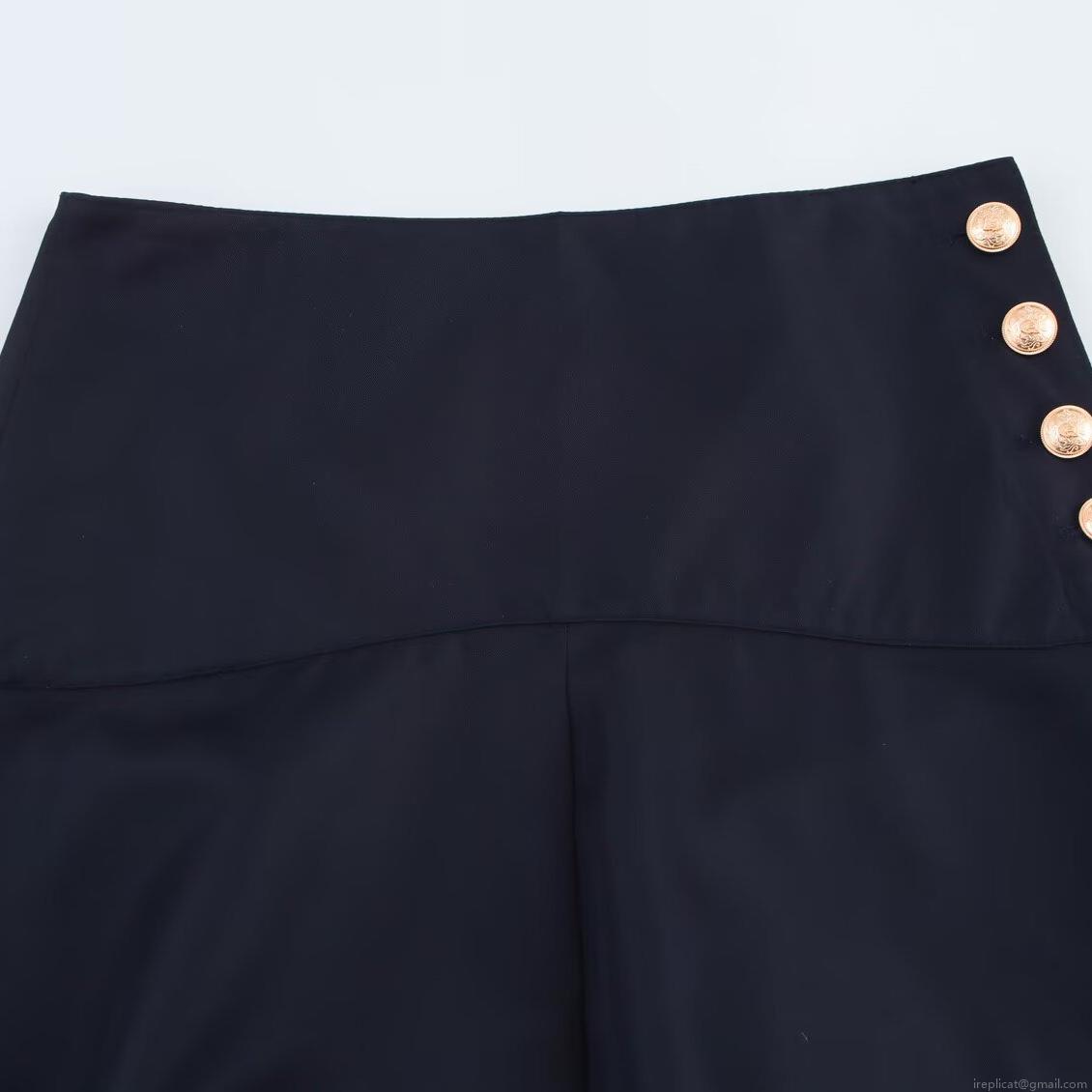 • Women High Waist A-Line Skirt With Gold Buttons Elegant Office Midi Skirt Black Solid Color Polyester Spandex Skirts For Women