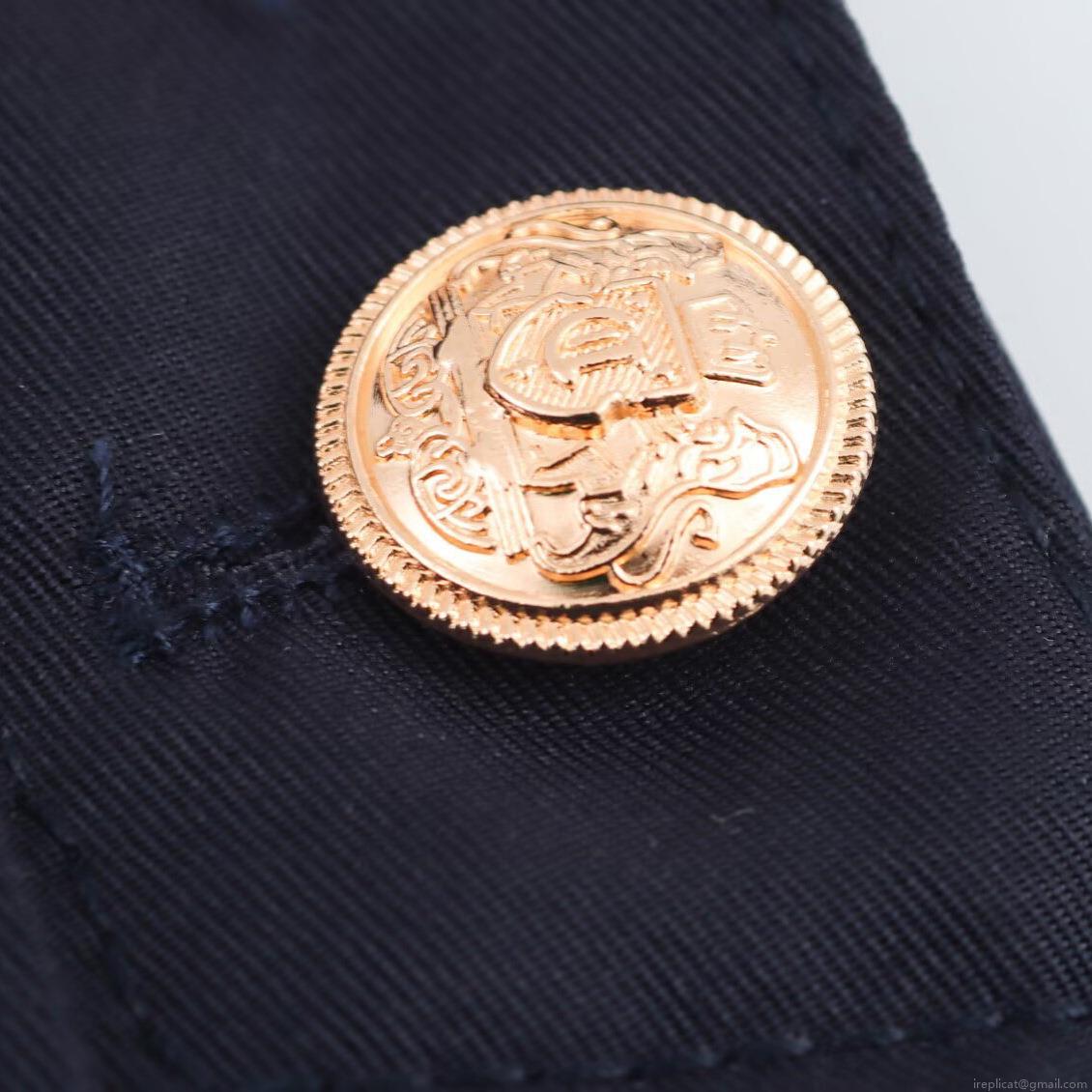 Solid Color, Button Decoration, High-waisted Design, Gold Embossed Buckle