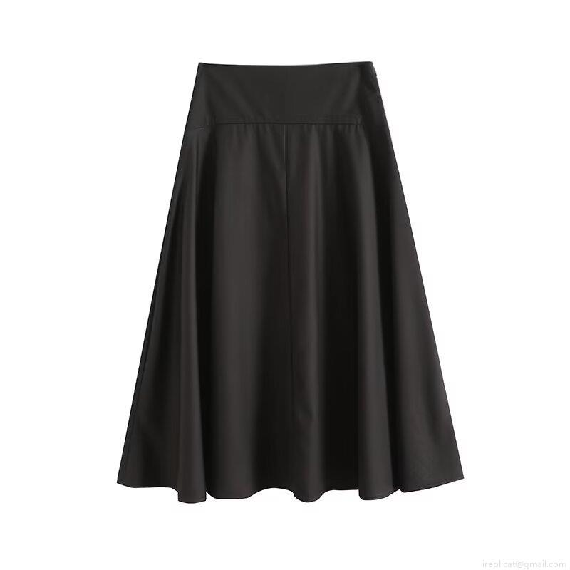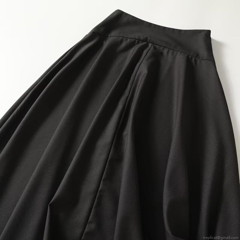 • Women High Waist Black A-Line Midi Skirt Elegant Polyester Viscose Blend Solid Color Casual Streetwear Long Umbrella Skirt For Women Daily Office Wear