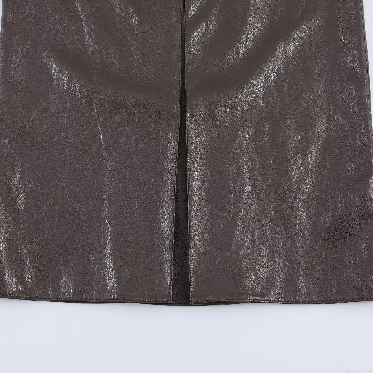 • Women High Waist Faux Leather Midi Skirt Sexy PU Pleated Straight Skirt With Pockets And Back Slit Streetwear Chic Solid Color Autumn Winter Bottoms