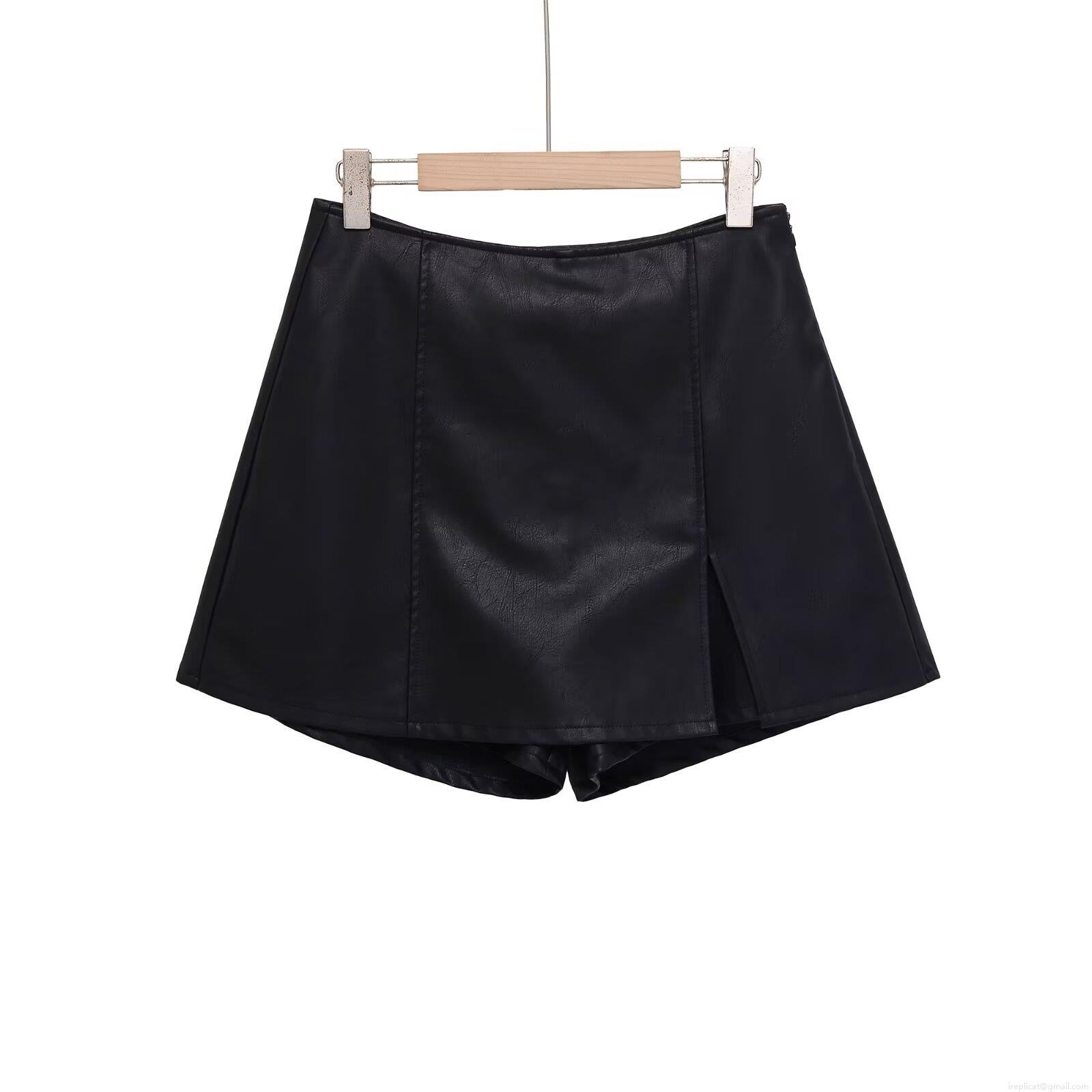 • Women High Waist PU Leather Skort Solid Black Side Split Mini Skirt Fashion Bodycon Pencil Skirt For Autumn Winter Streetwear Clubwear