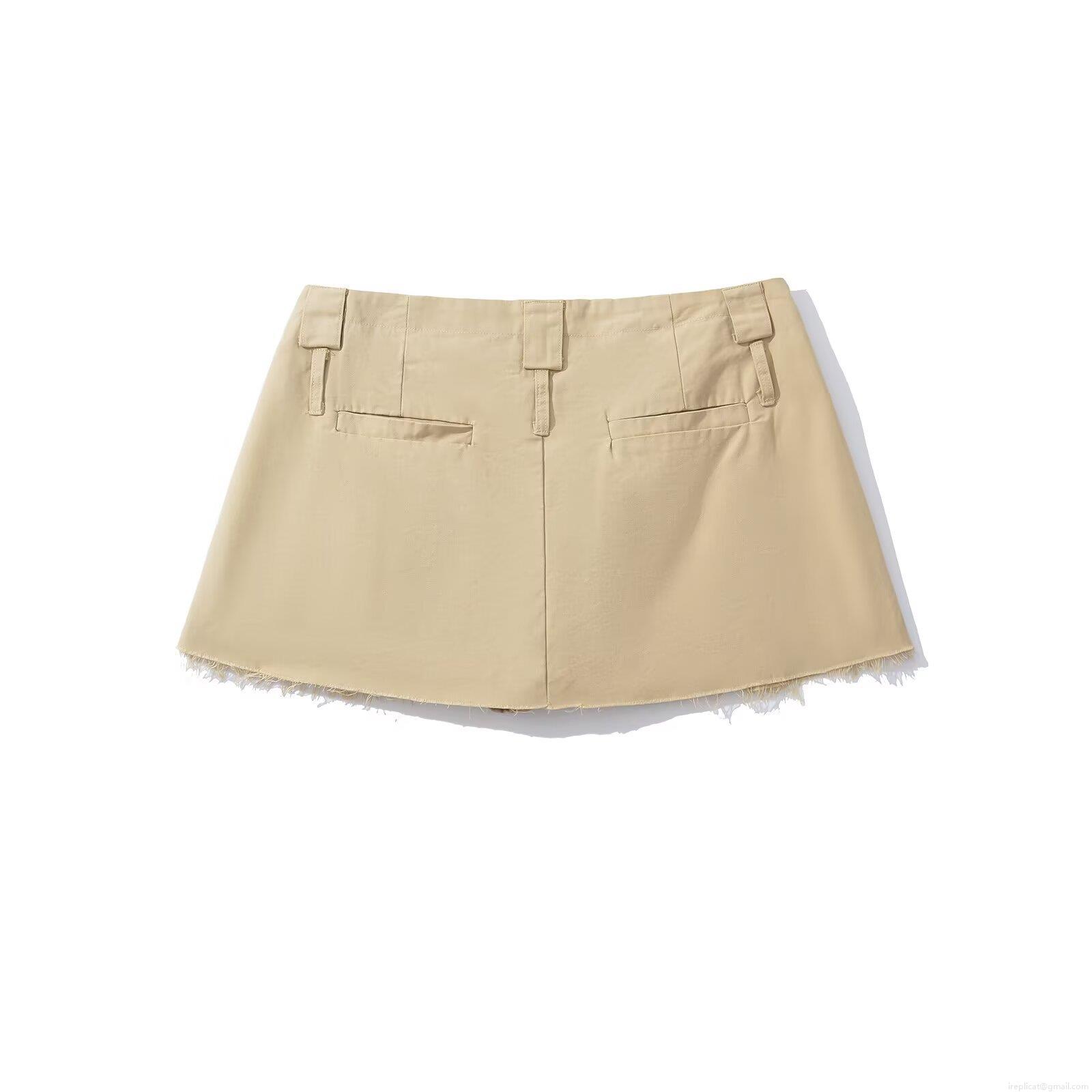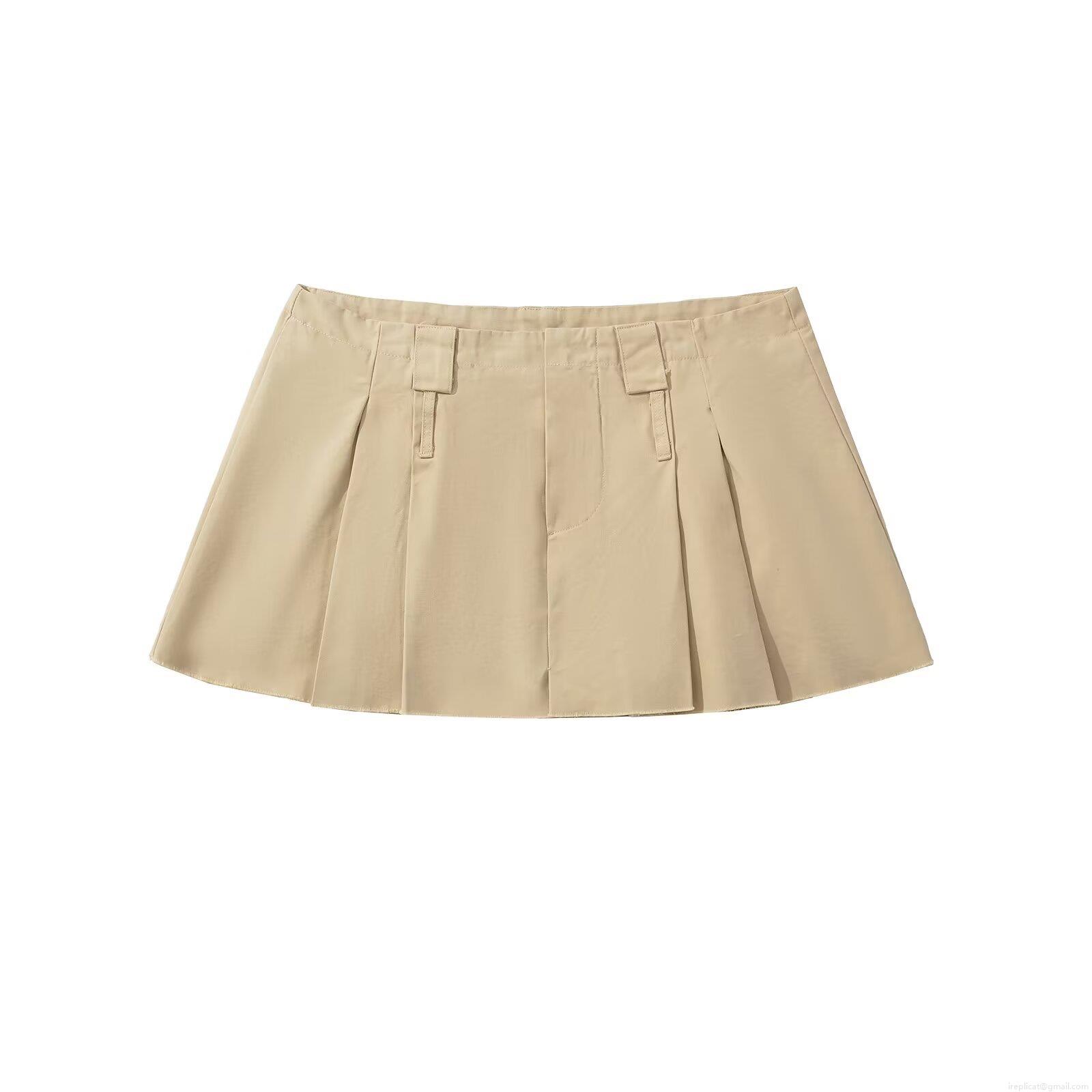 • Women High Waisted Pleated A-Line Skort Cotton Lyocell Blend Raw Edge Hem Mini Skirt With Anti-Glare Lining Streetwear Casual Summer Spice Girl Style