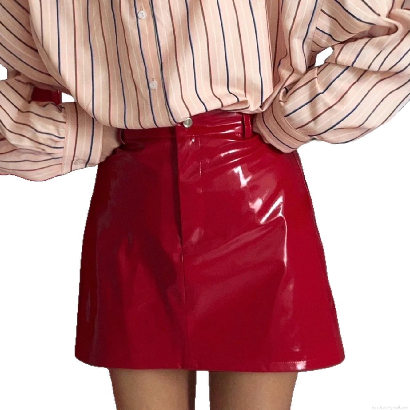 Women High Waisted PU Leather Mini Skirt Sexy Shiny Patent Bodycon Short Skirt Streetwear Party Clubwear Fashion Red Black Bottoms