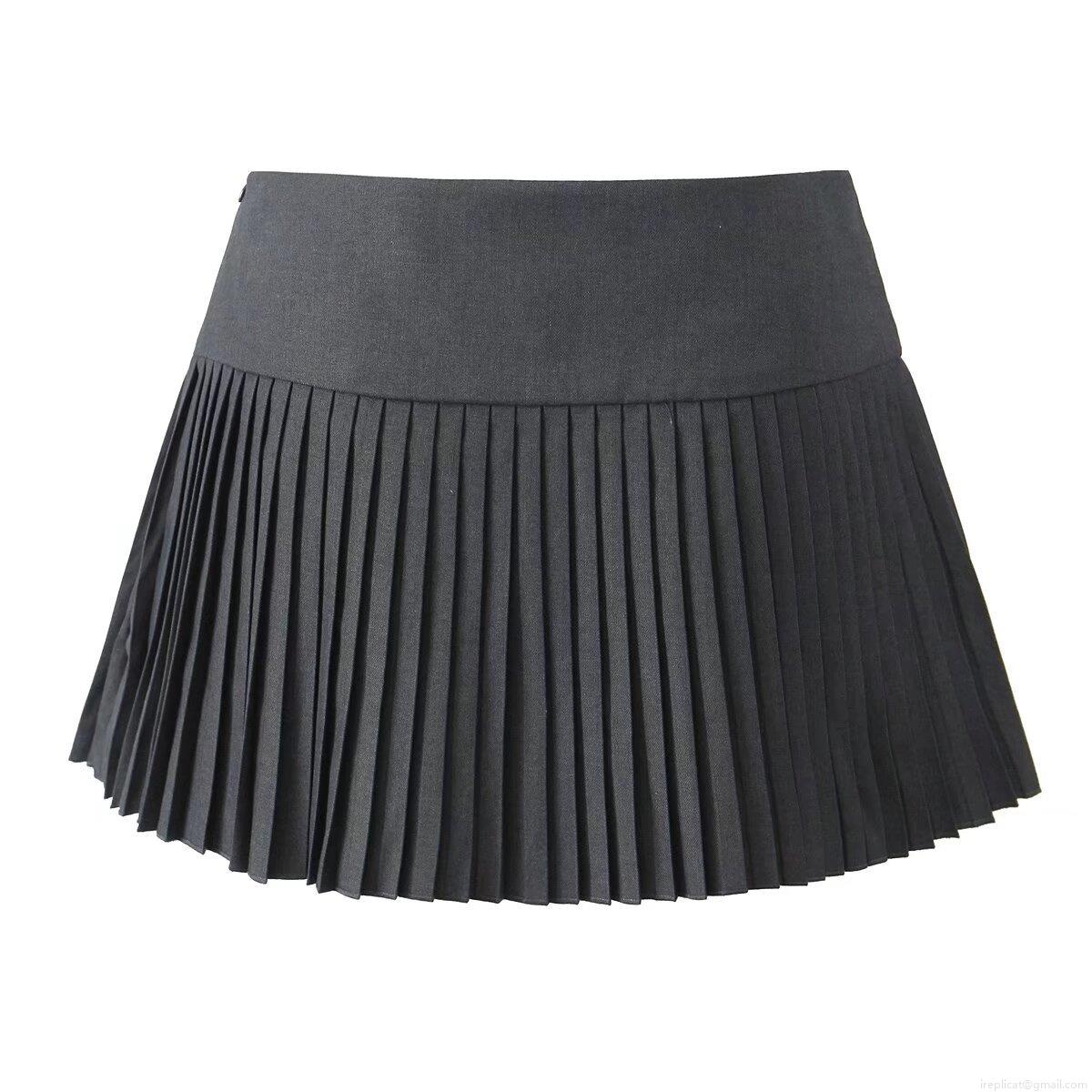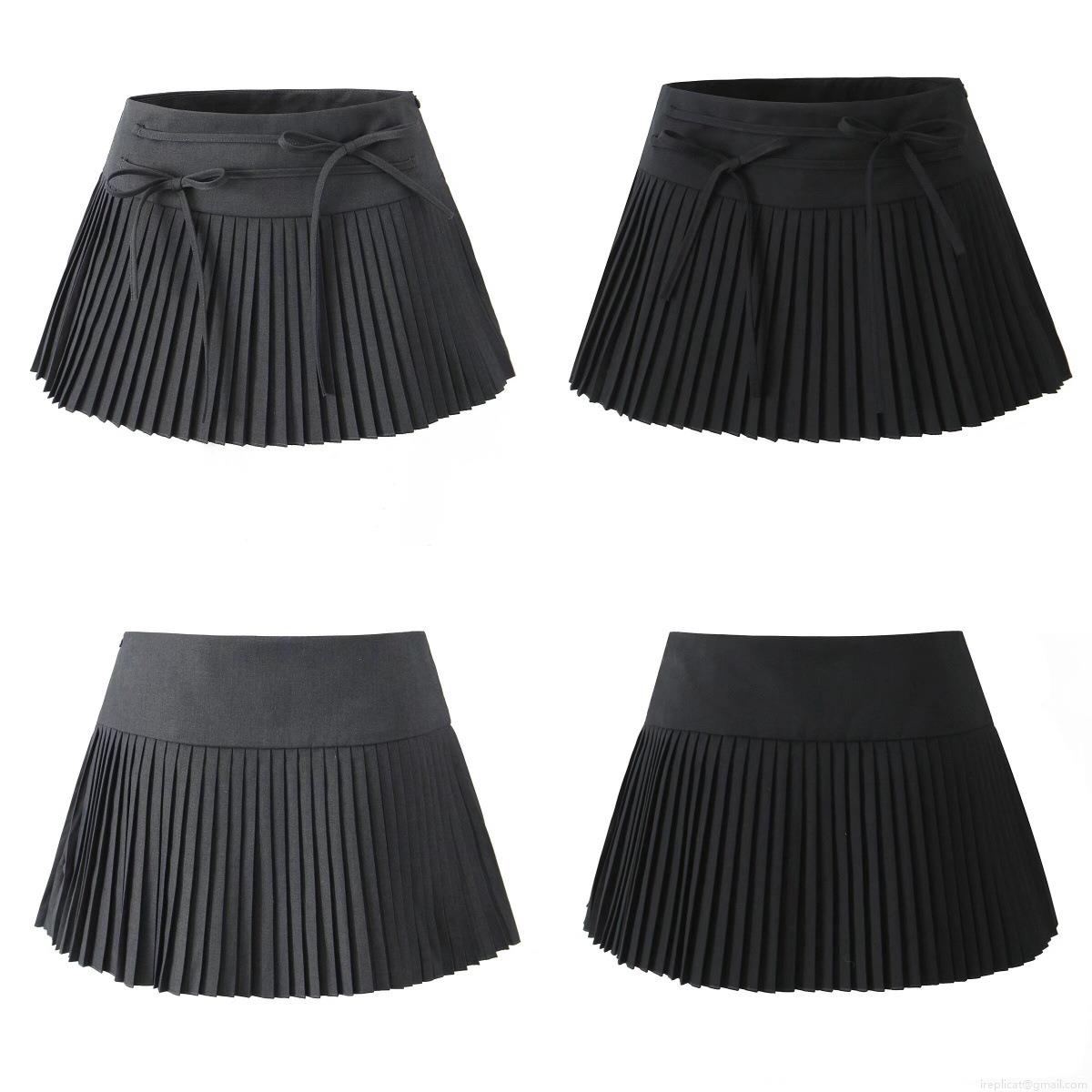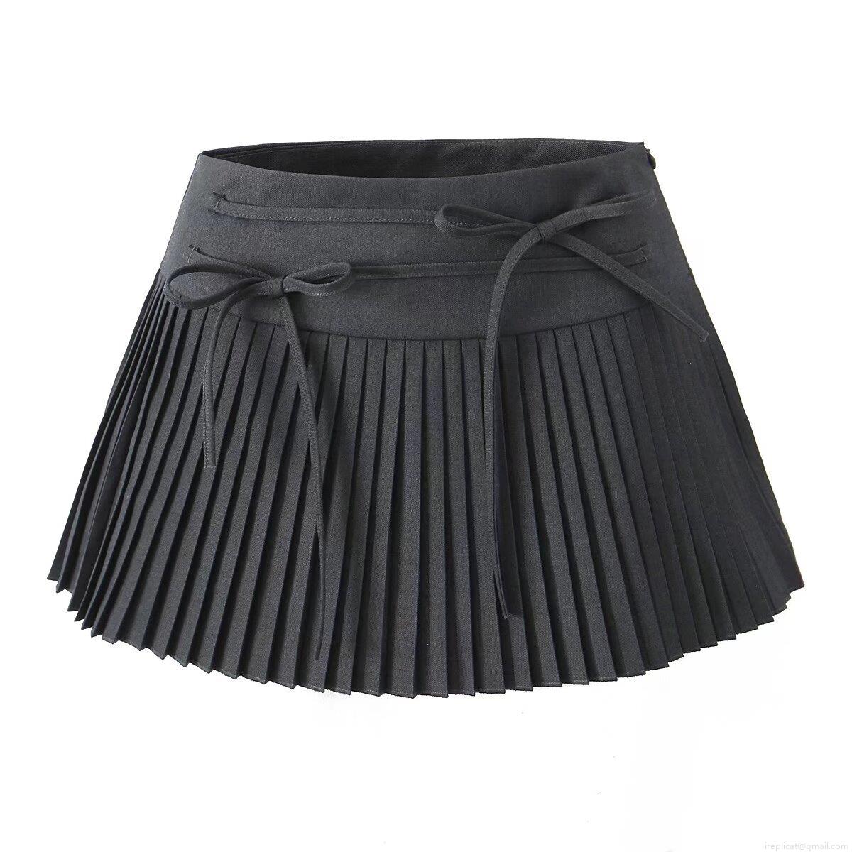 • Women Pleated Mini Skirt Polyester Rayon Blend Lace-up High Waist A-line Short Skirt Street Style Casual Bottoms With Safety Shorts Inside