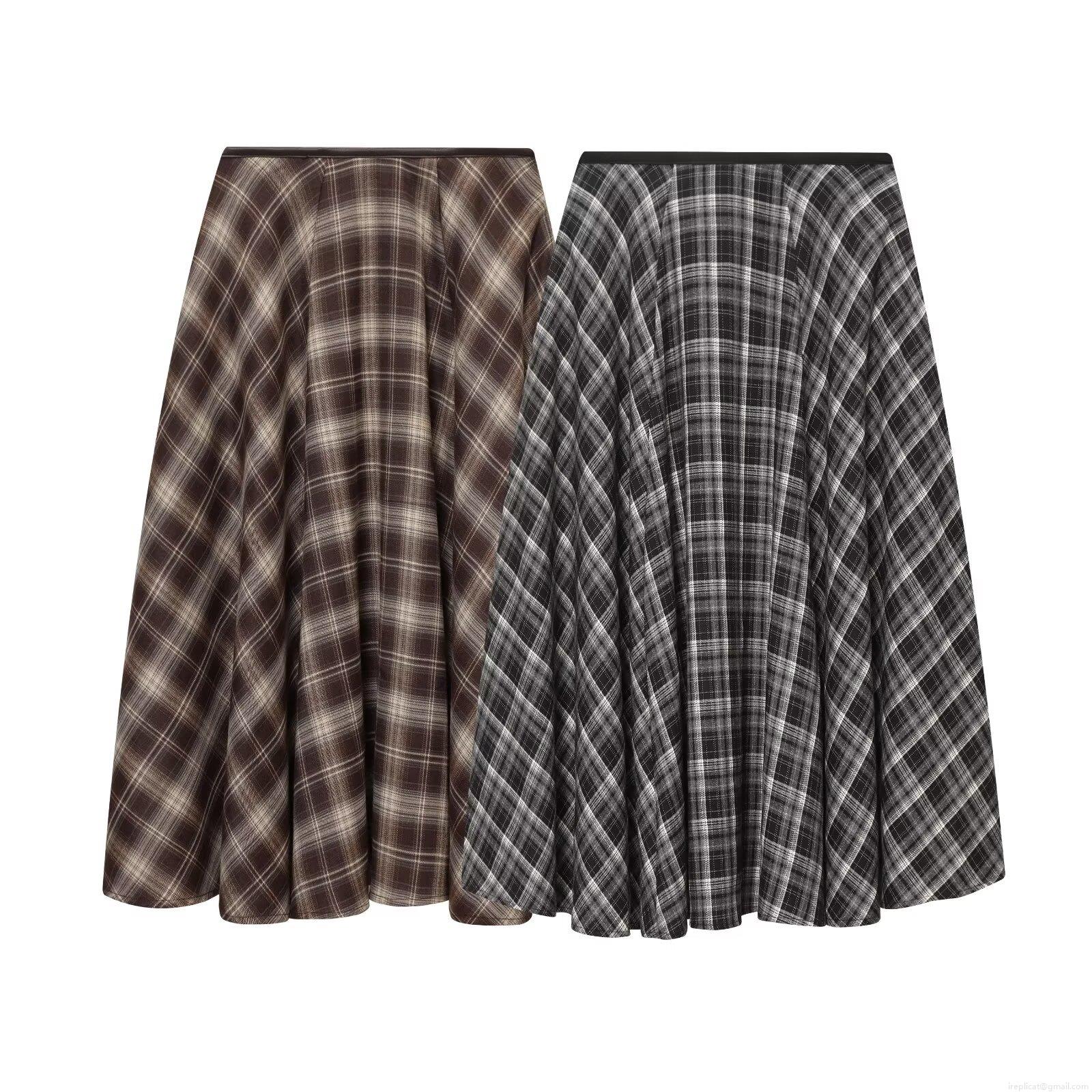 • Women Retro Plaid A-Line Midi Skirt High Waist British Style Umbrella Swing Skirt Elegant Streetwear Polyester Bottoms For Ladies Dating Party
