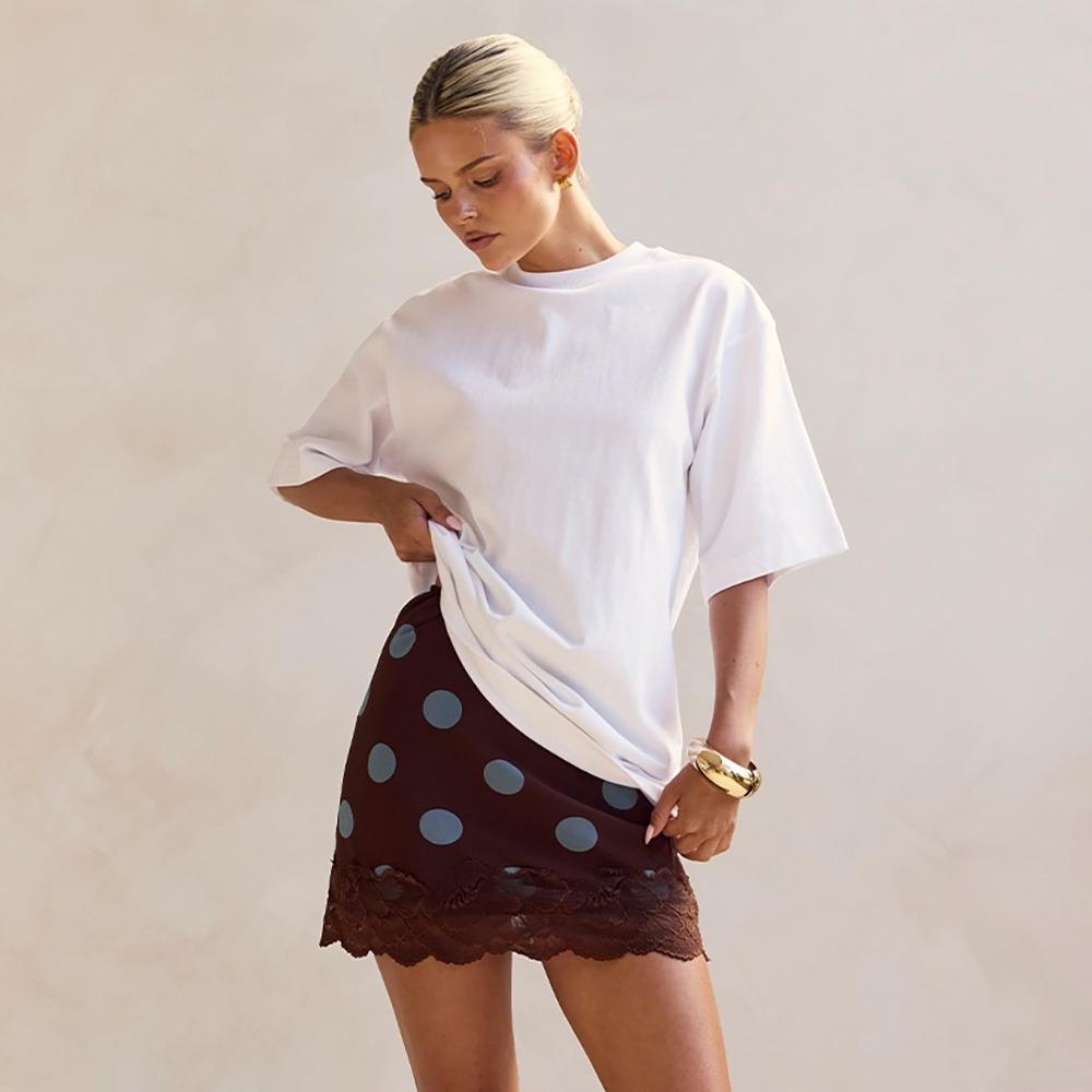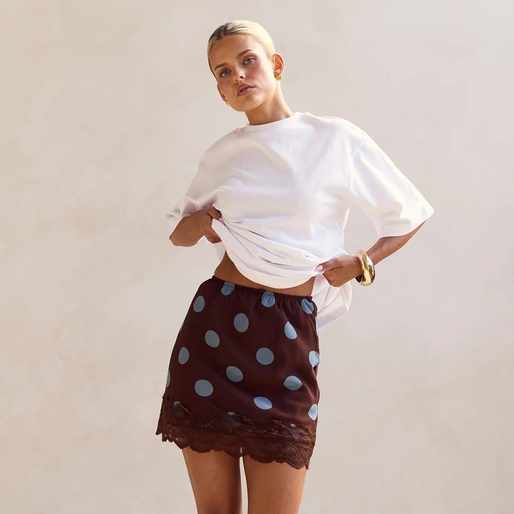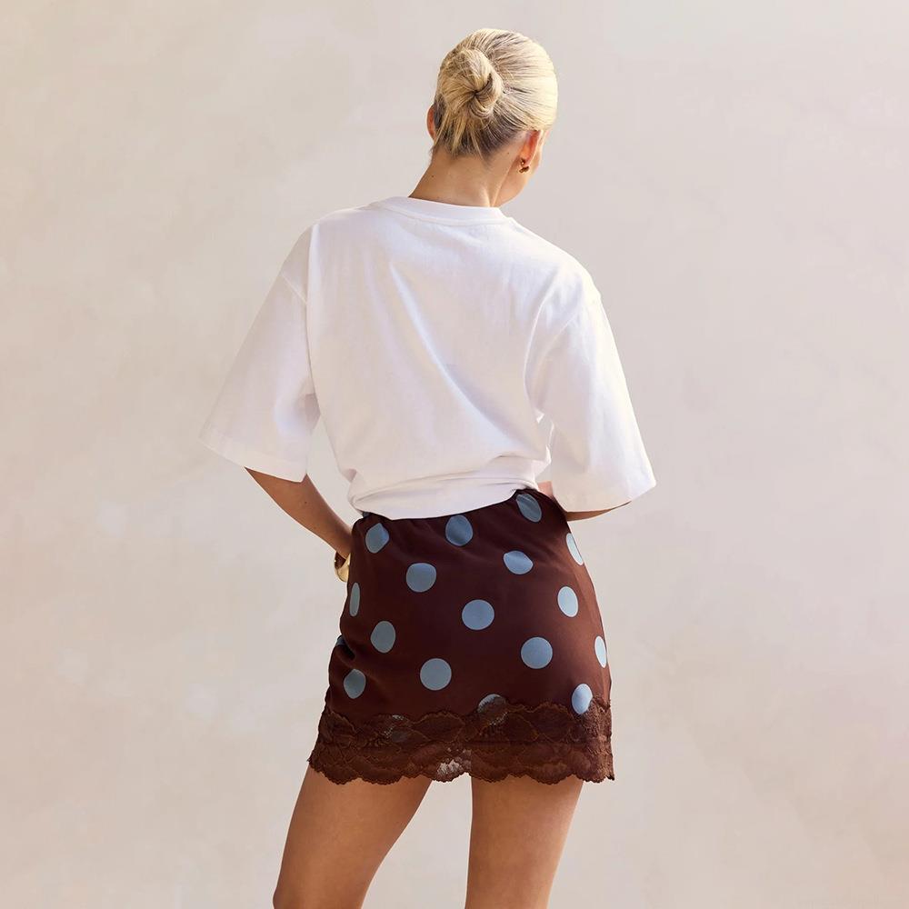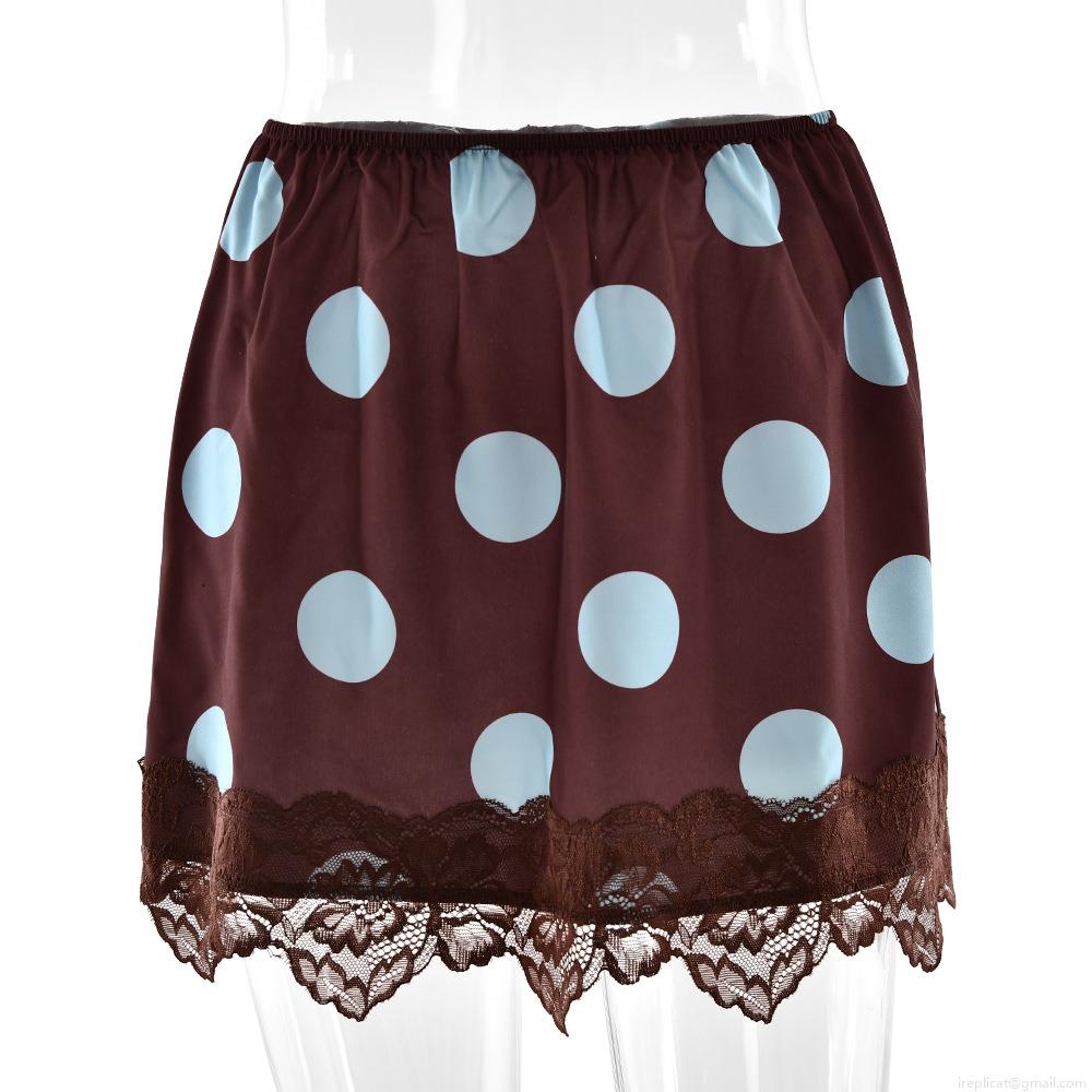 Women Sexy High Waist Polka Dot Print Satin Mini Skirt With Lace Trim Hem Bodycon Short Skirt Streetwear Summer