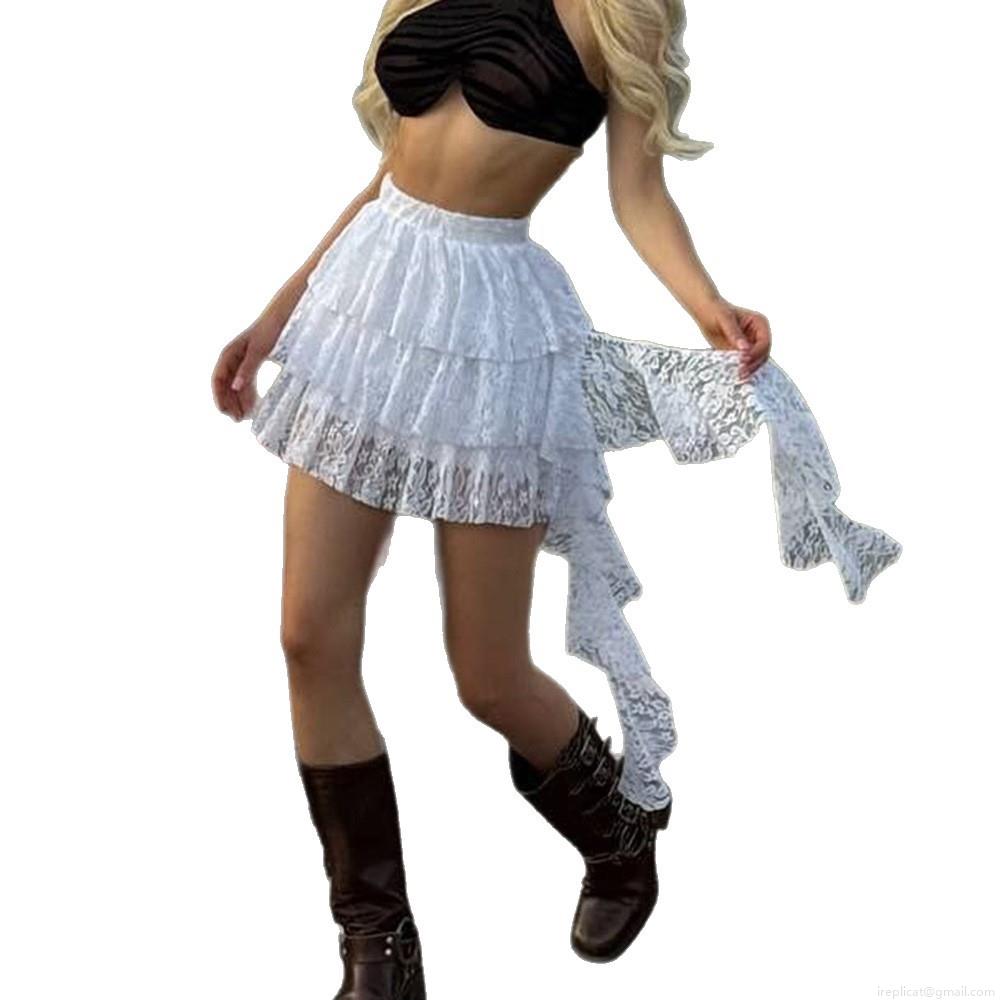 • Women Sexy Irregular Lace Tiered Cake Skirt High Waist Boho Mini Skirt With Long Streamers For Party Club Beach Vacation Night Out