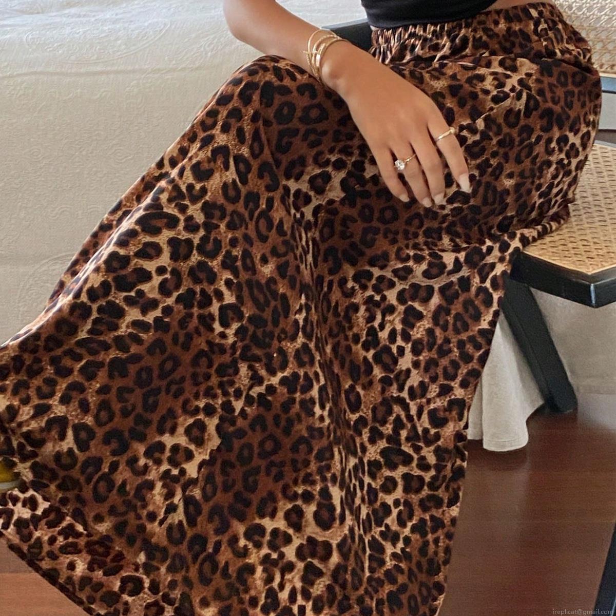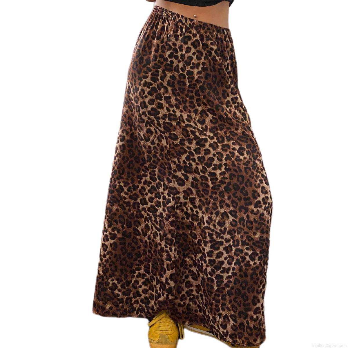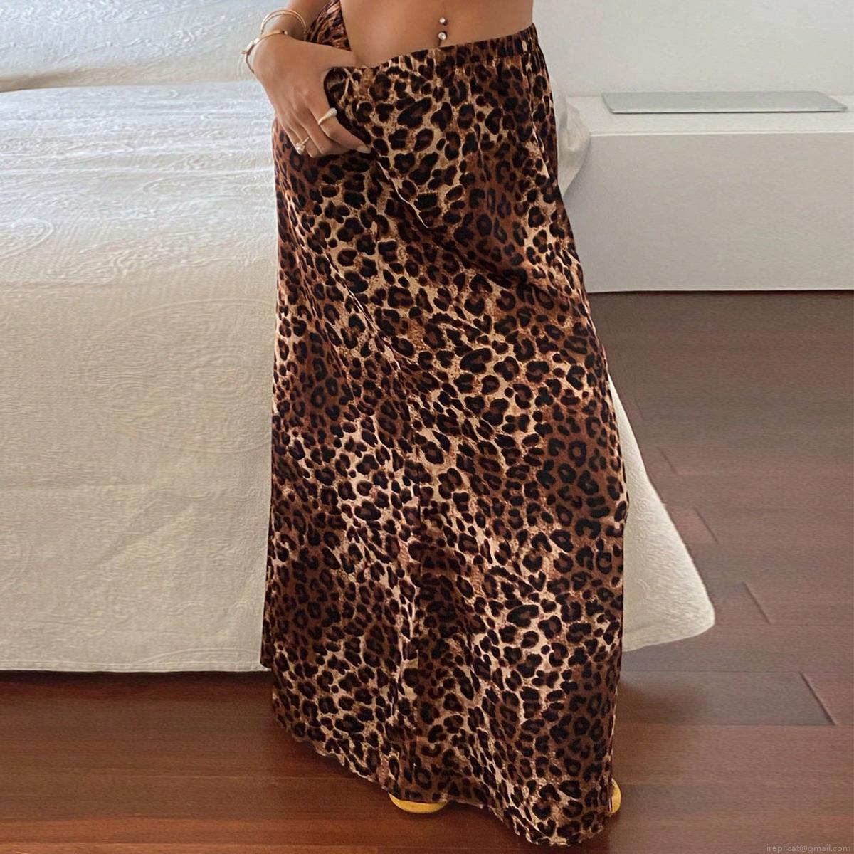 • Women Sexy Leopard Print High Waist Maxi Skirt Elastic Waist Flowy Long A-Line Fishtail Skirt Elegant Casual Party Bottoms