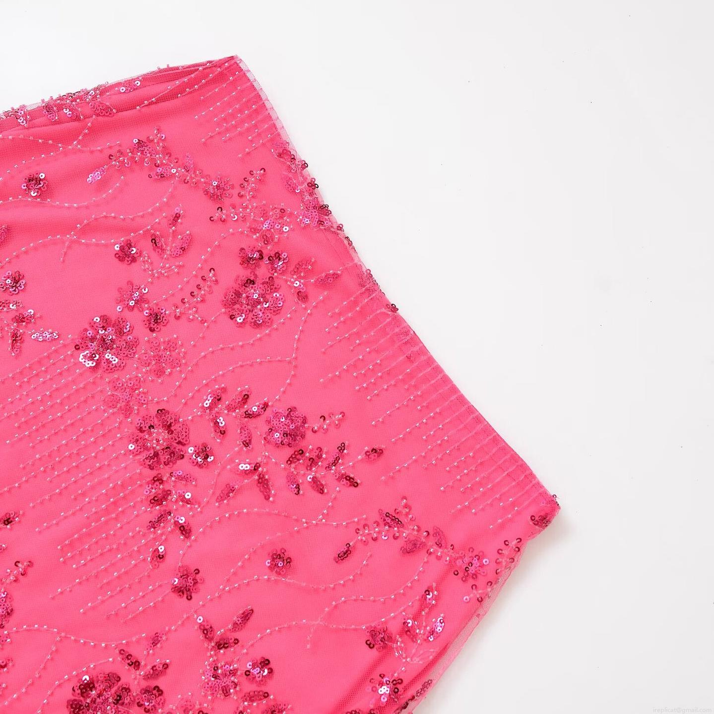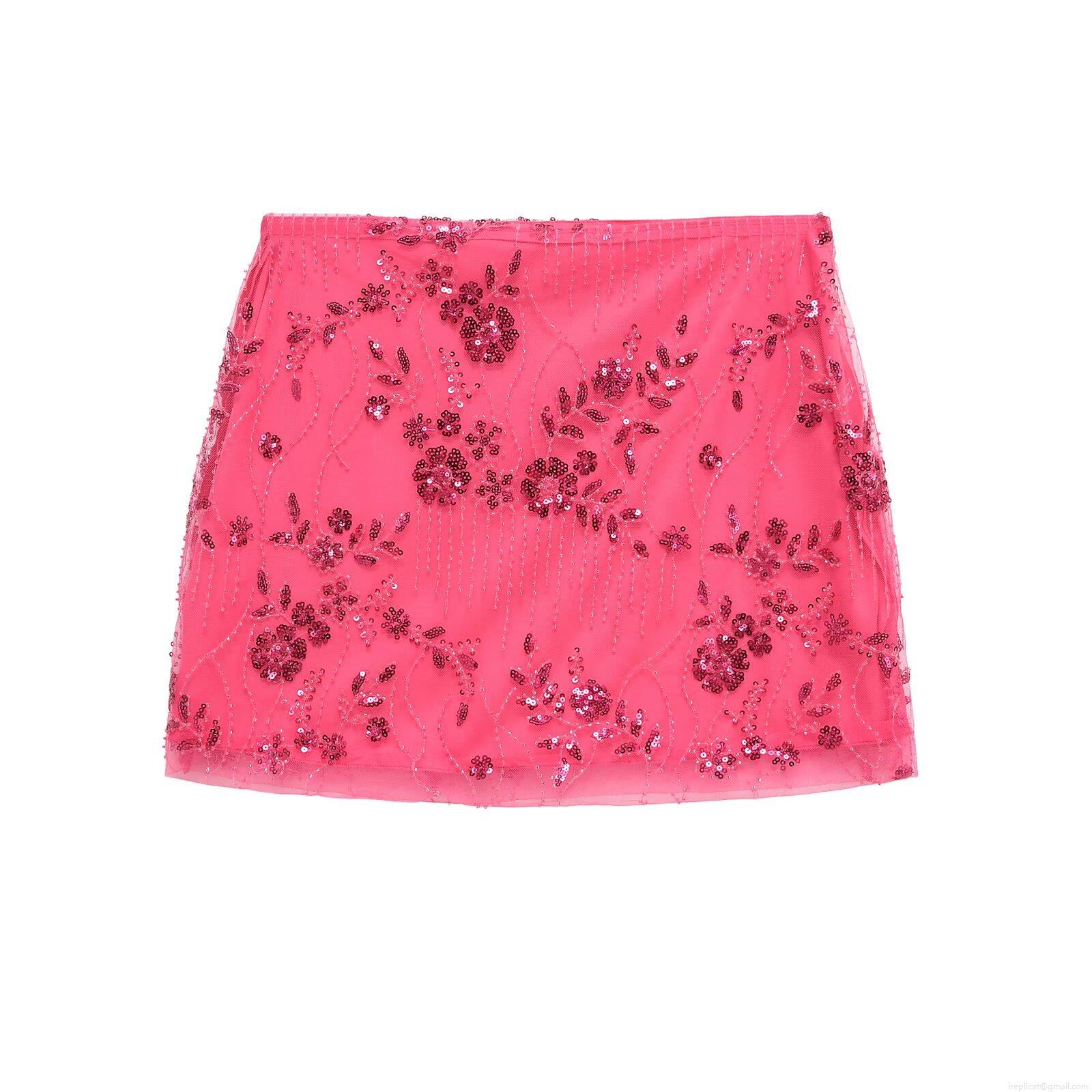 • Women Sexy Sequin Beaded Mini Skirt Mesh Embroidery Slim Fit Hip Wrap Party Skirt Summer Nightclub Clubwear