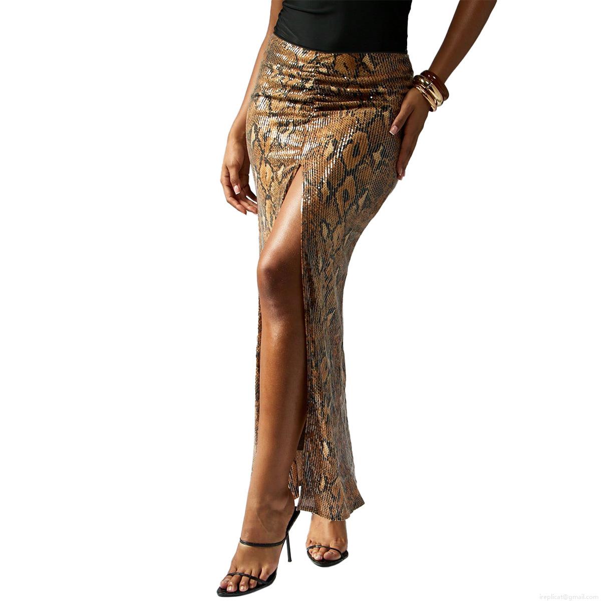 • Women Sexy Sequin Snake Print Maxi Skirt High Waist High Side Slit Long Skirts Sparkly Python Pattern Bodycon Skirts For Party Street Clubwear