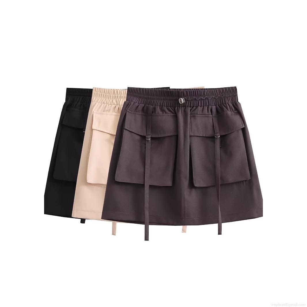 • Women Utility Cargo Mini Skirt High Waist Drawstring Pockets Streetwear Bodycon Skirt Solid Color Polyester Casual Bottoms With Ribbons