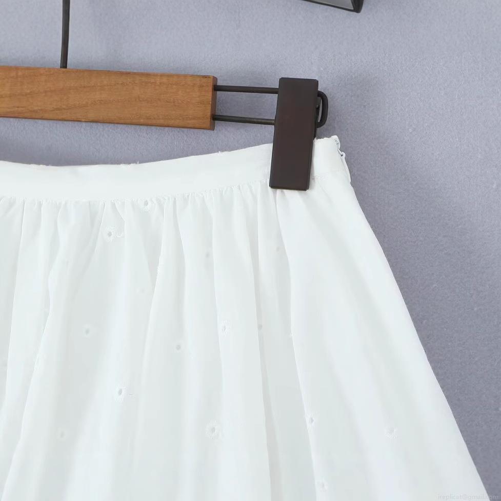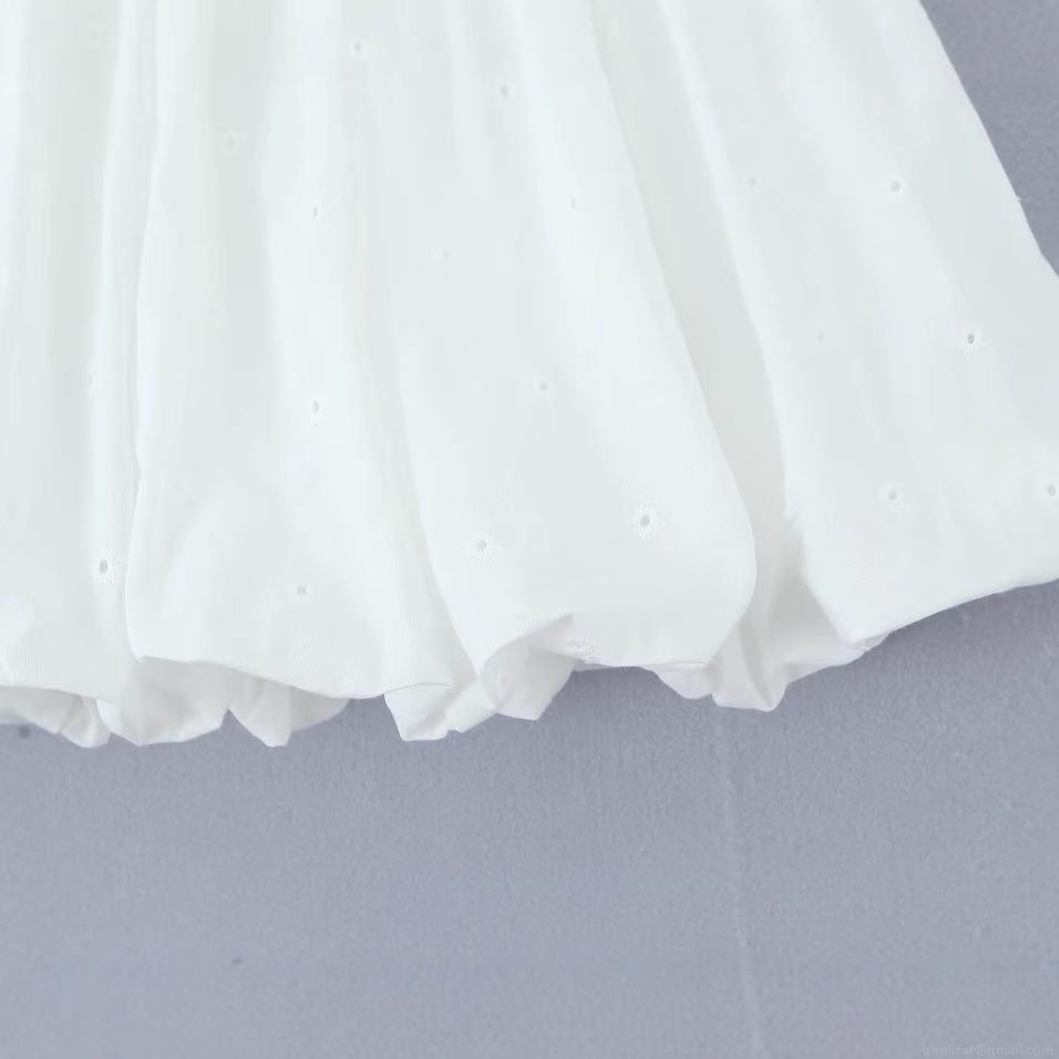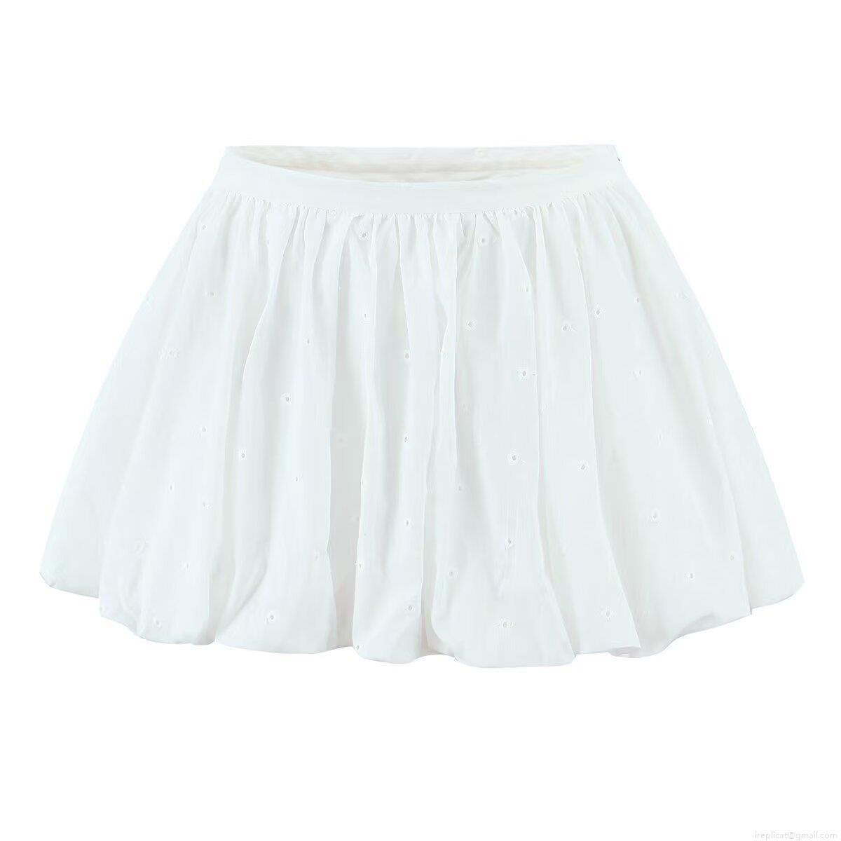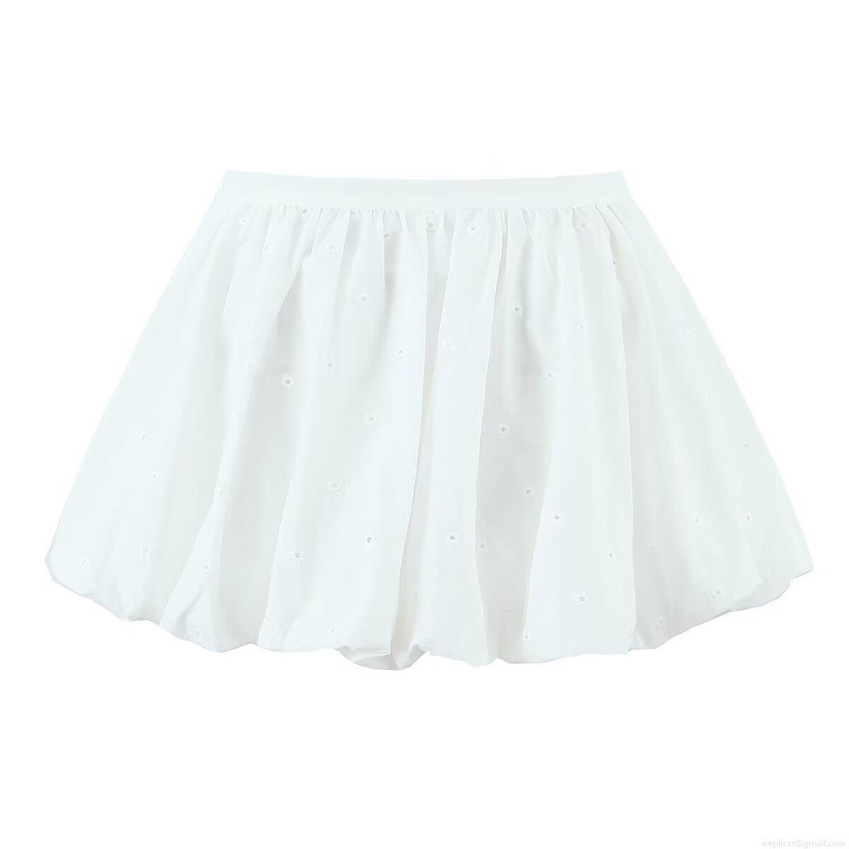 • Women's 100% Cotton Eyelet Embroidery Mini Bubble Skirt Elegant High Waist Puffy Skirt Summer Casual Solid White Short Skirt Streetwear For Ladies