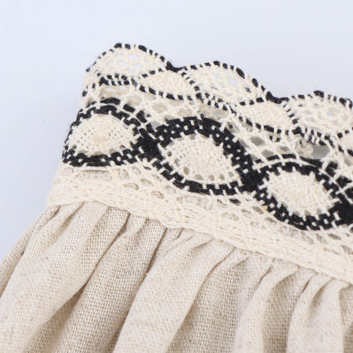 • Women's A-Line Long Maxi Skirt Vacation Style Cotton Linen Feel Skirt with Embroidered Waistband Beige Solid Color High Waist Skirt for Women