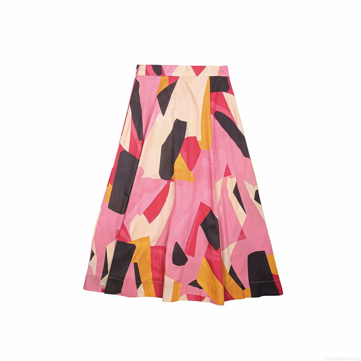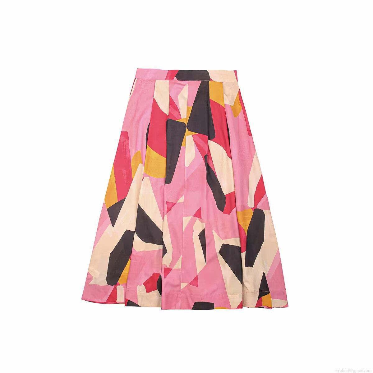 Color Blocking, Ink Wash Pattern, Printing, Elastic Waistband, Abstract Geometry, A-shaped Arrangement