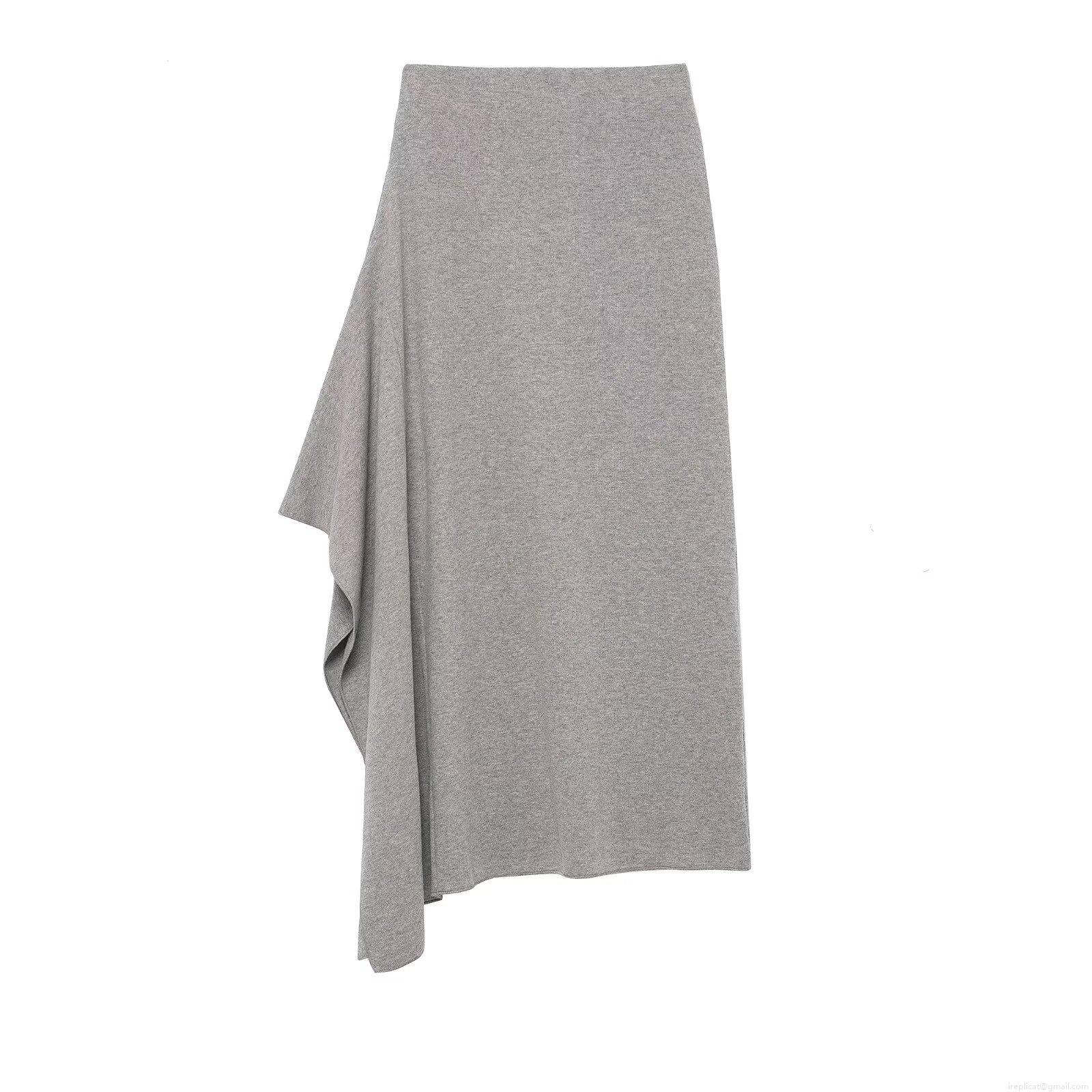 Women's Asymmetric Midi A-Line Skirt Knit Texture Polyester Blend High Waist Minimalist Patchwork European American Street Style Grey Fashion Skirts