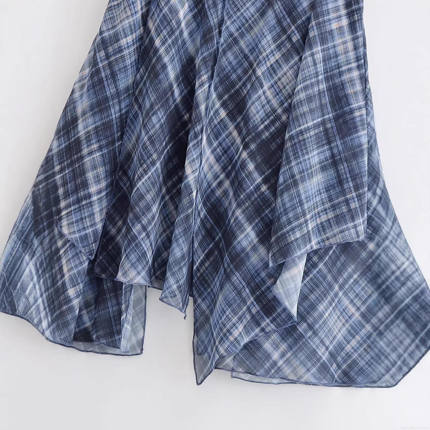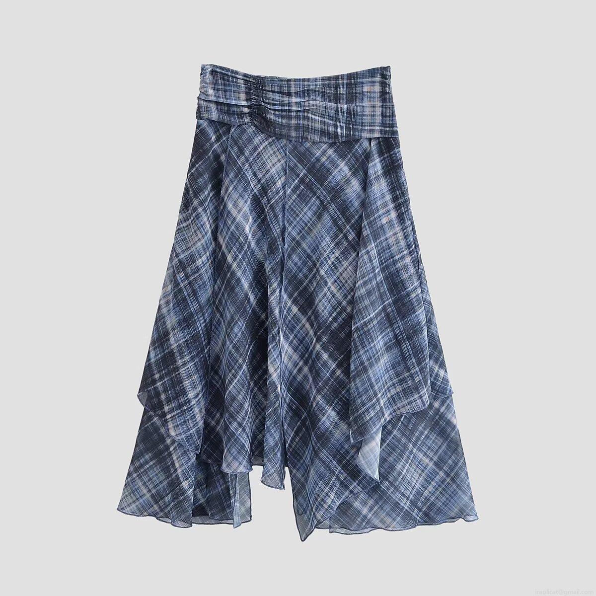 • Women's Asymmetric Plaid Midi Skirt High Waist Ruched Blue Checkered Irregular Handkerchief Hem Chiffon Feel Skirt For Streetwear Party Chic Style