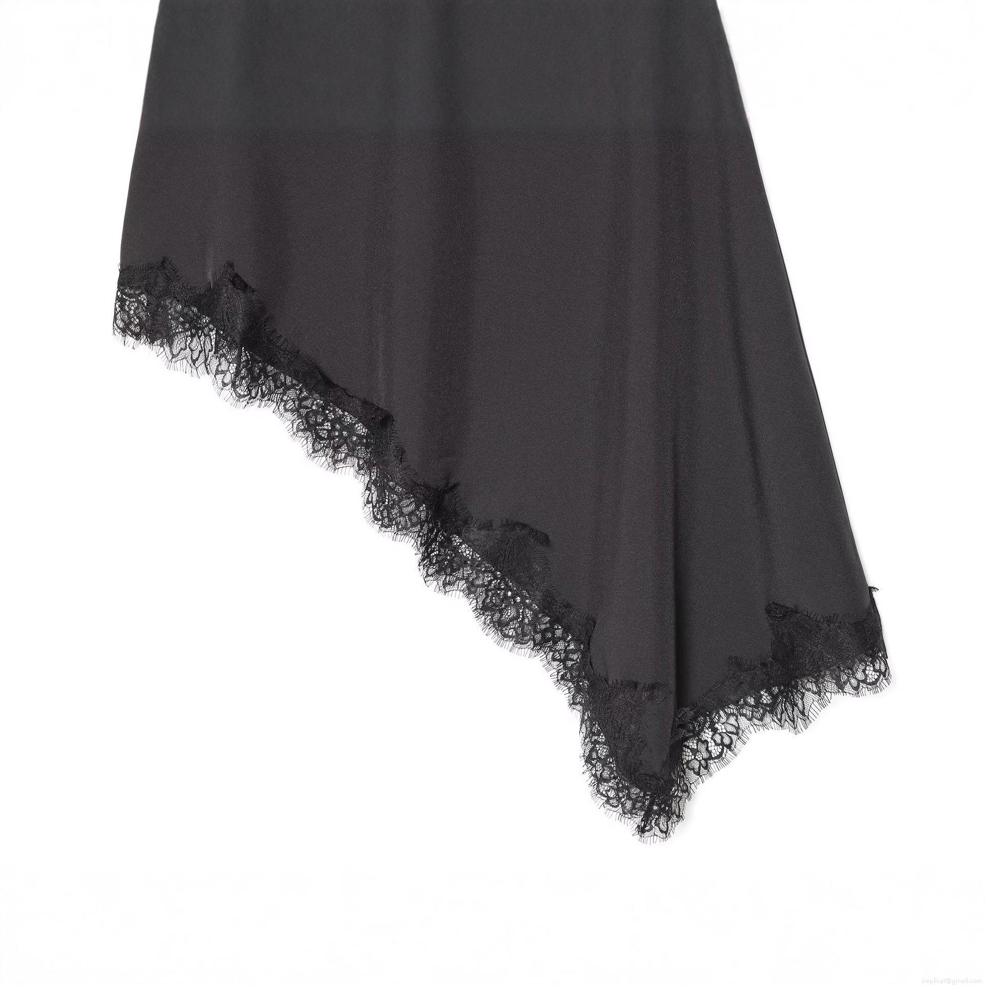 • Women's Black Asymmetric Lace Hem Skirt High Waist Polyester Irregular Midi Skirt Streetwear Clubwear Party Sexy Ladies Skirt With Lace Trim