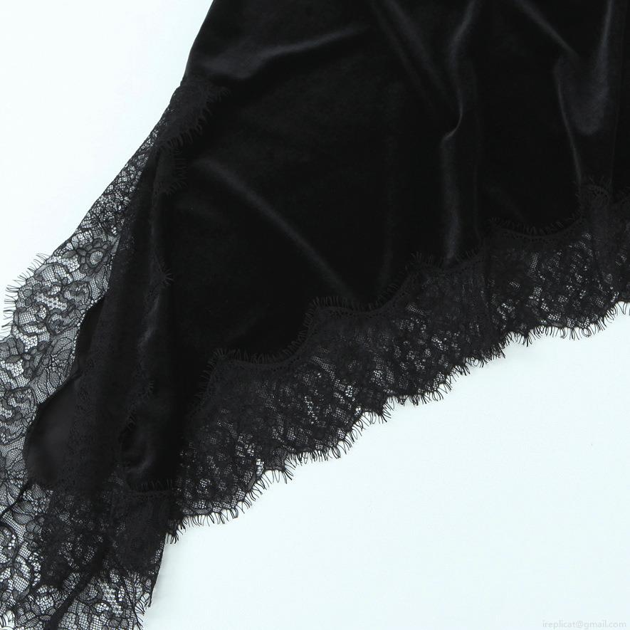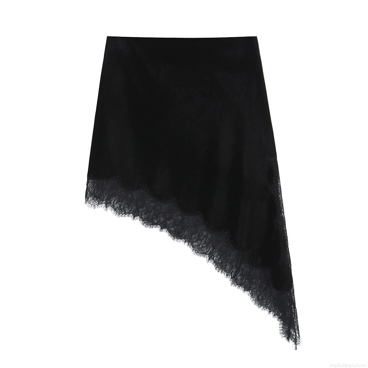 • Women's Black Velvet Asymmetric Midi Skirt With Eyelash Lace Trim Sexy High Waist Irregular Hem Patchwork Skirt For Party Club Streetwear Elegant Ladies Bottoms