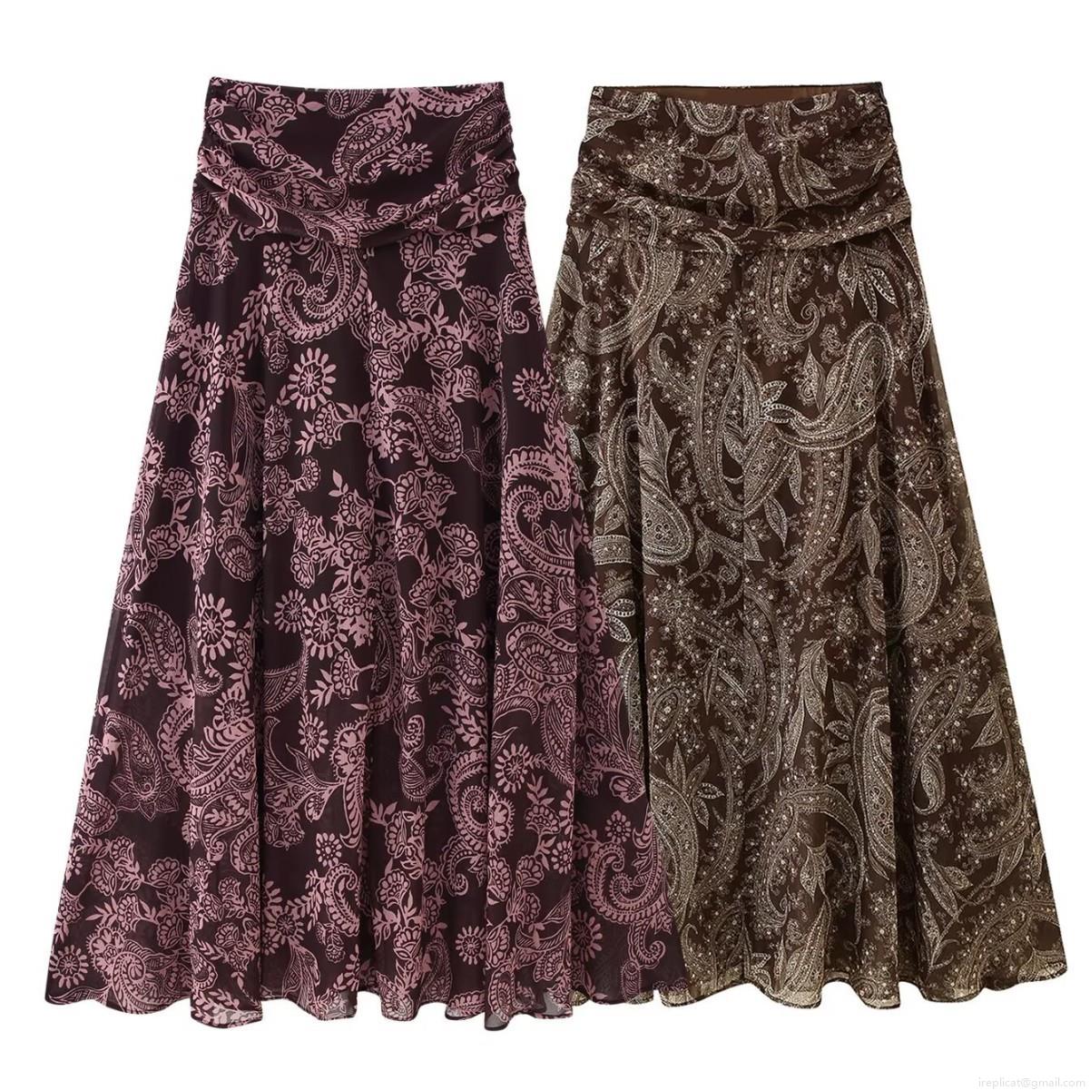 • Women's Bohemian Retro Paisley Chiffon Skirt High Waist Pleated A-Line Midi Skirt Summer Holiday Casual Beach Flowy Long Skirt