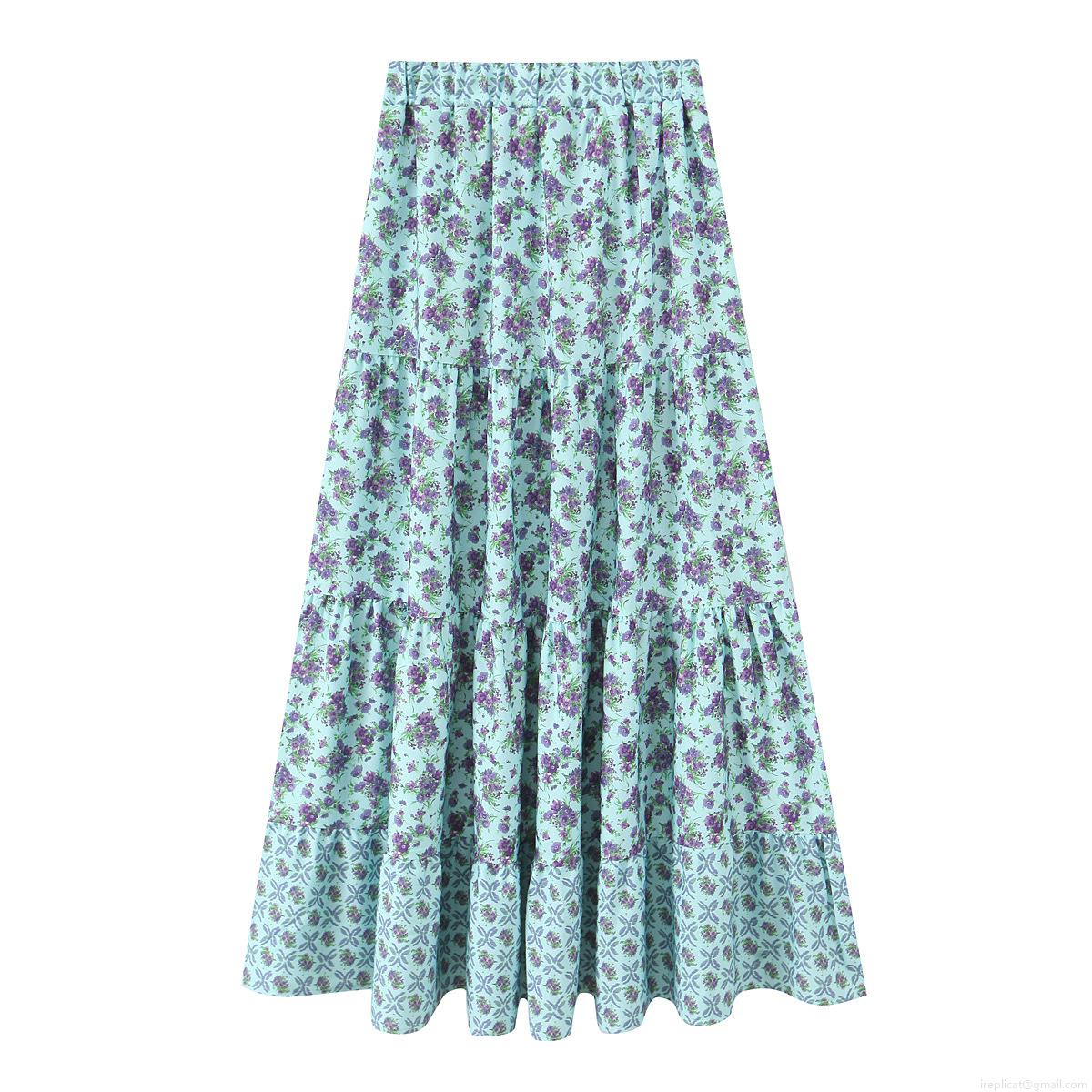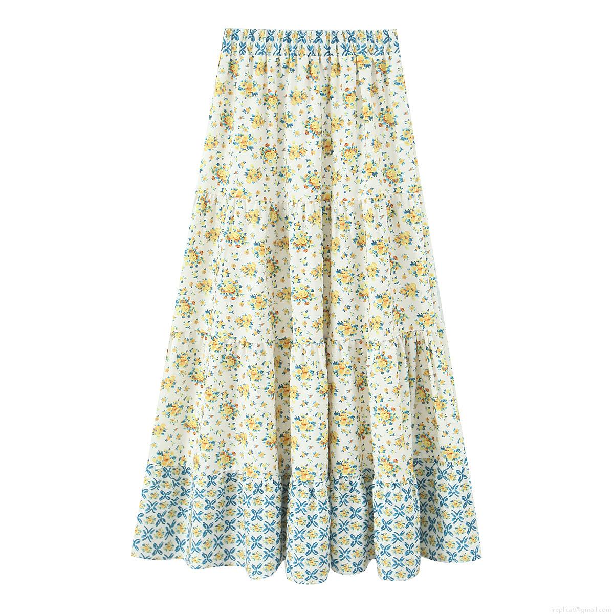 • Women's Bohemian Tiered Maxi Skirt Floral Print High Waist Elastic Long Skirts Casual Summer Vacation Beach Wear Flowy Skirt