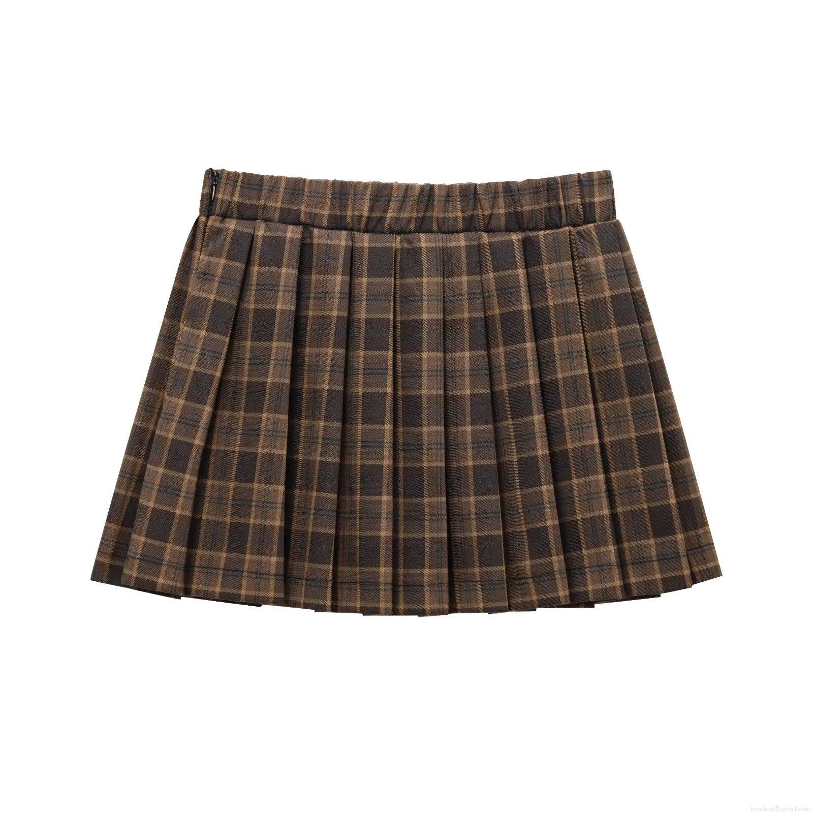 • Women's British Preppy Style Plaid Pleated Mini Skirt Retro High Waist A-Line Checkered Short Skirt with Drawstring for School Daily Party