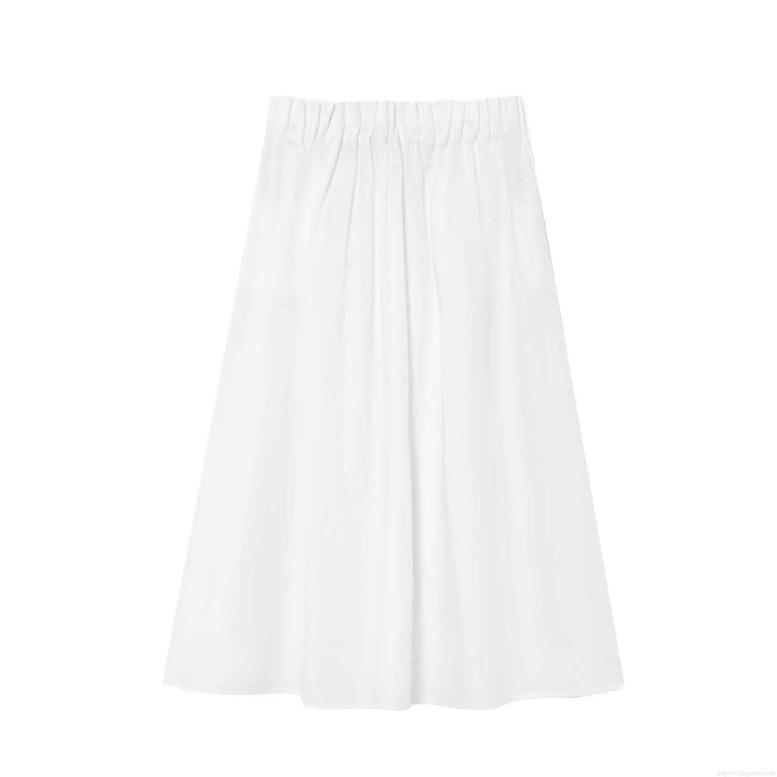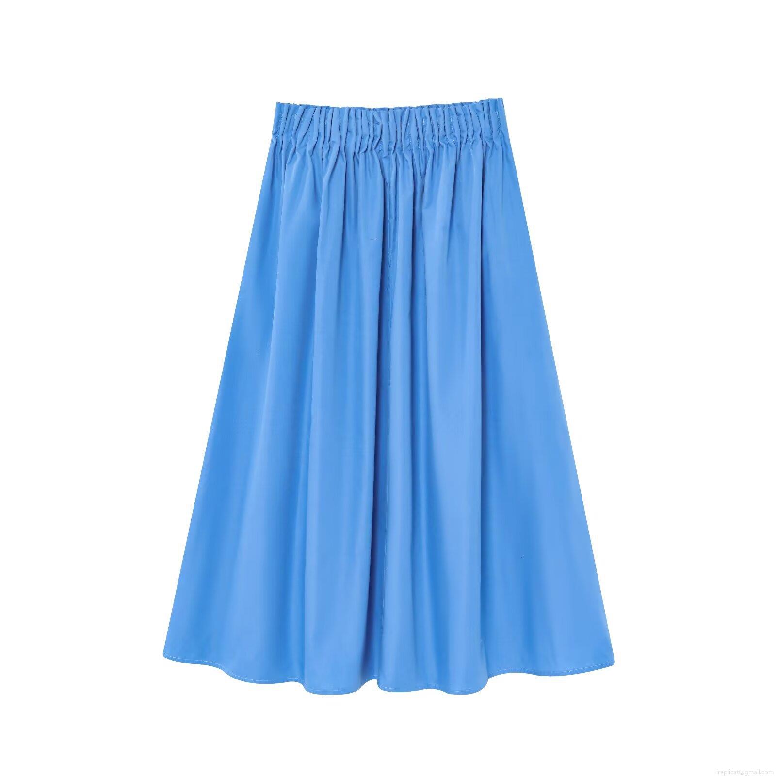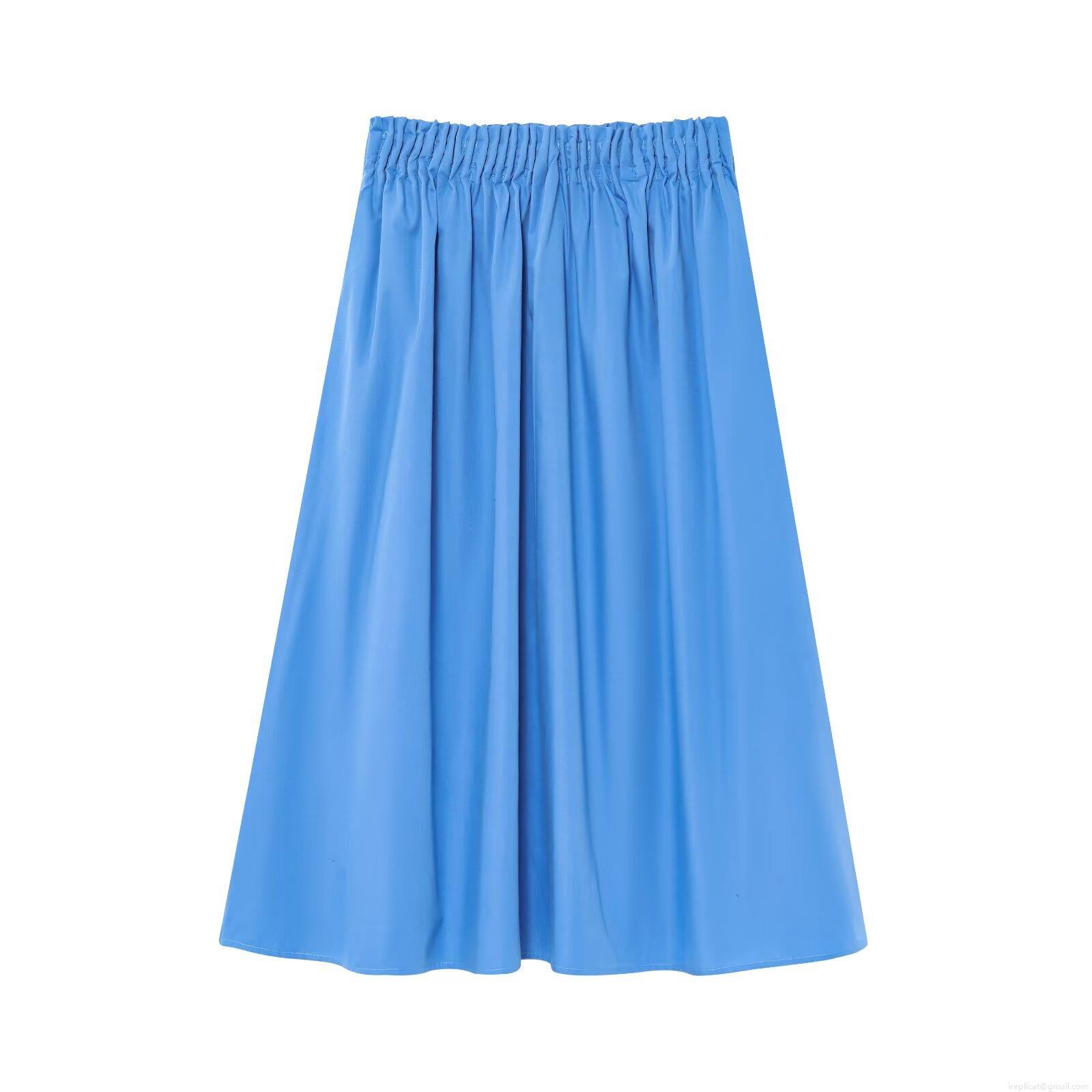 • Women's Casual High Waist Pleated Midi Skirt Solid Color Poplin Texture Polyester Elastic Waist A-Line Skirt For Daily Wear Streetwear