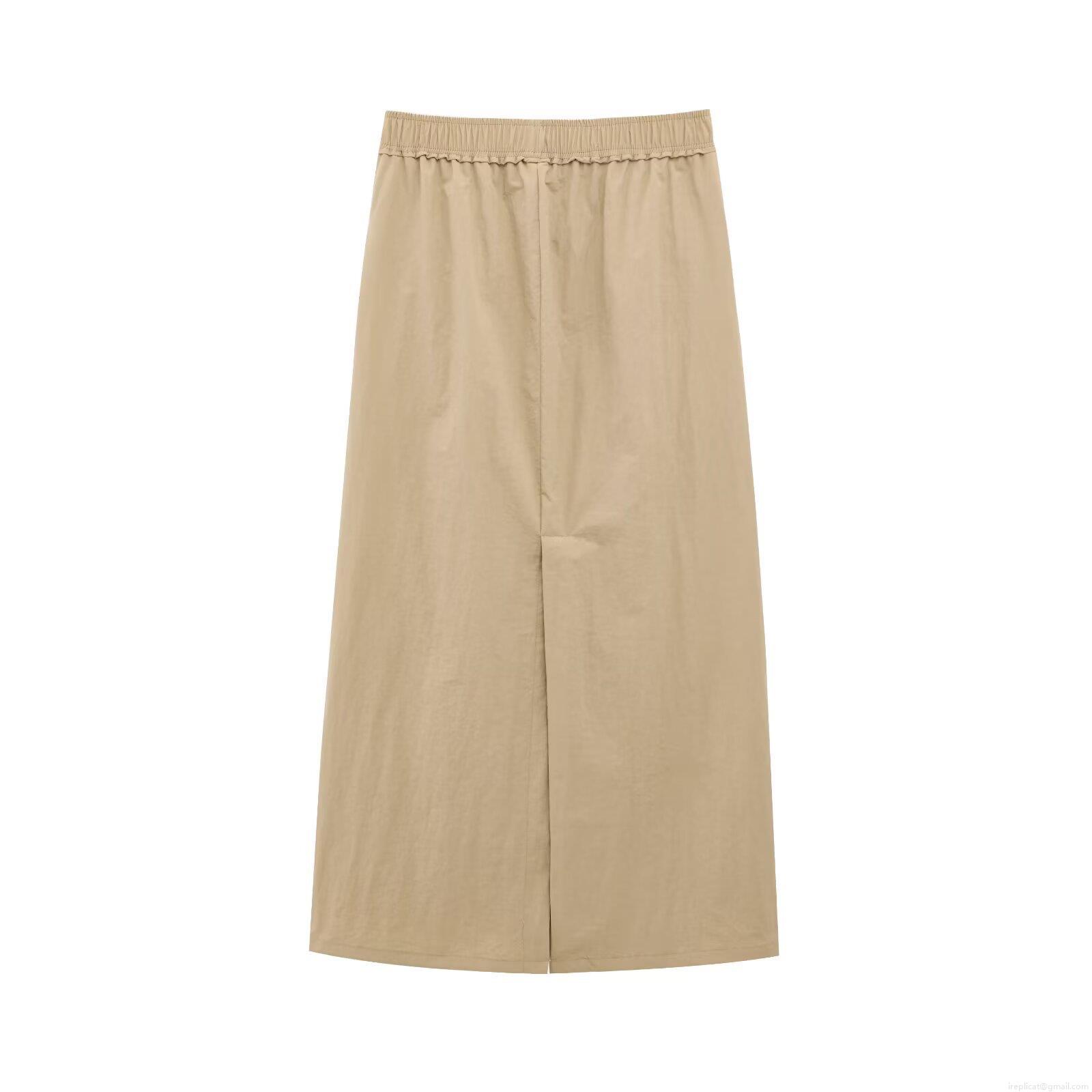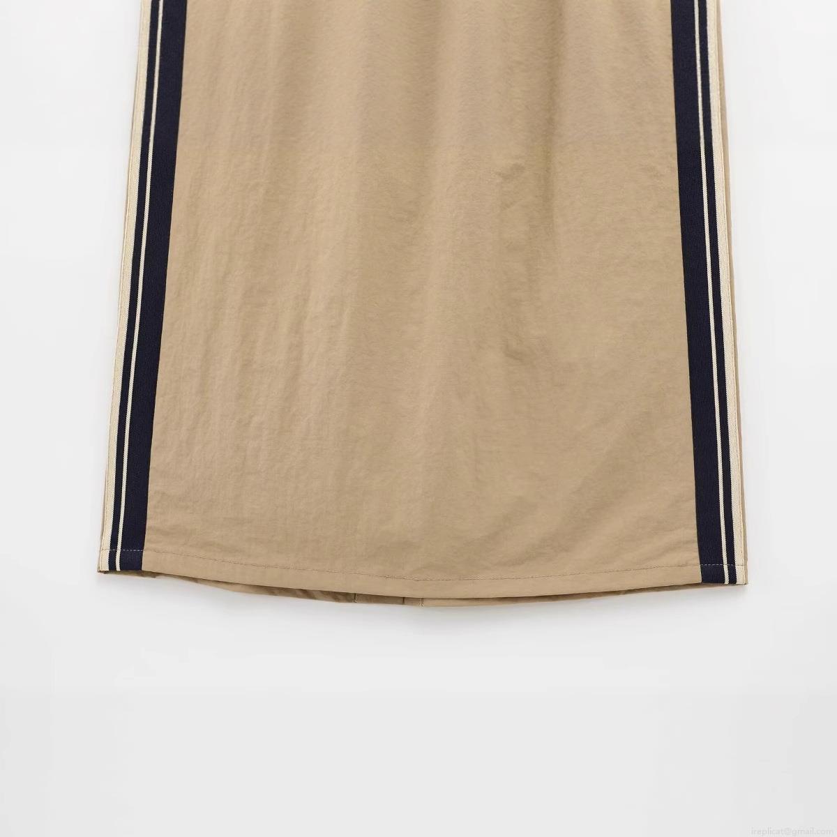 • Women's Casual Khaki Midi Skirt High Waist Elastic Side Stripes Bodycon Pencil Skirt With Back Slit Streetwear Street Style Polyester Skirt For Women Daily Wear
