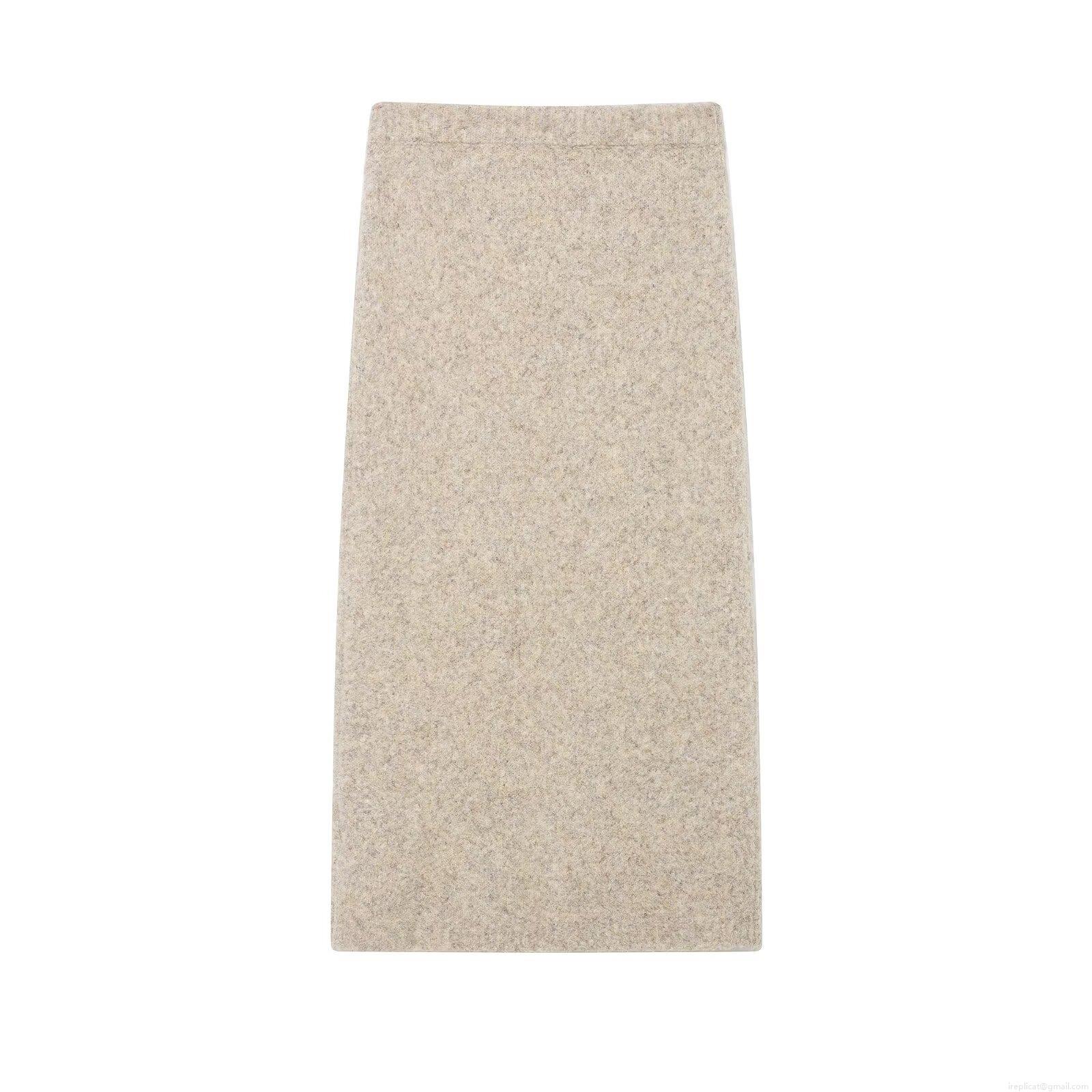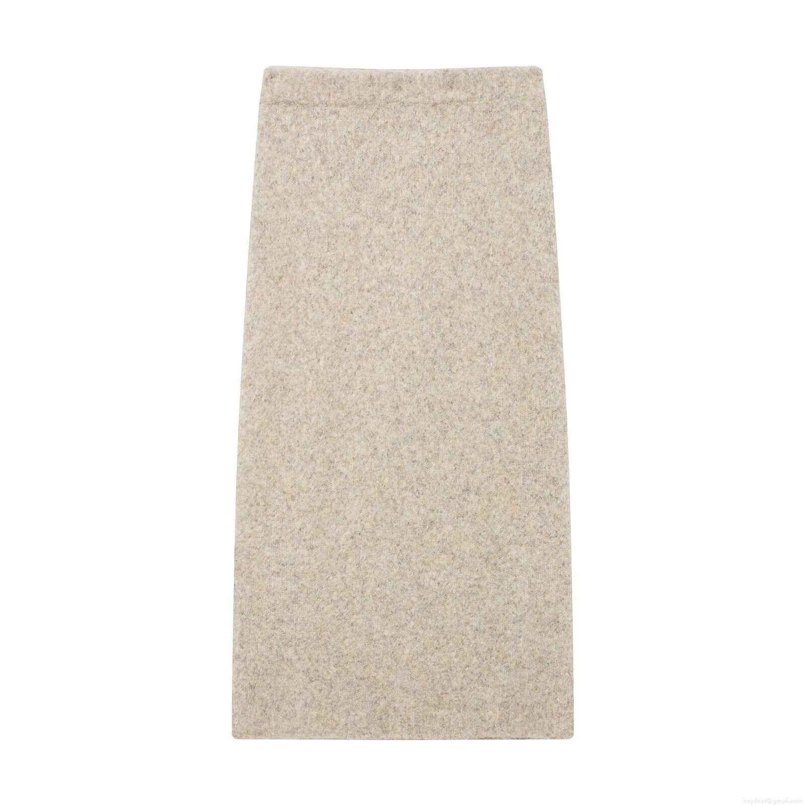 • Women's Casual Knit Midi Skirt High Waist Polyester Oatmeal Khaki Solid Color Elegant Street Style Winter Warm Skirt for Ladies