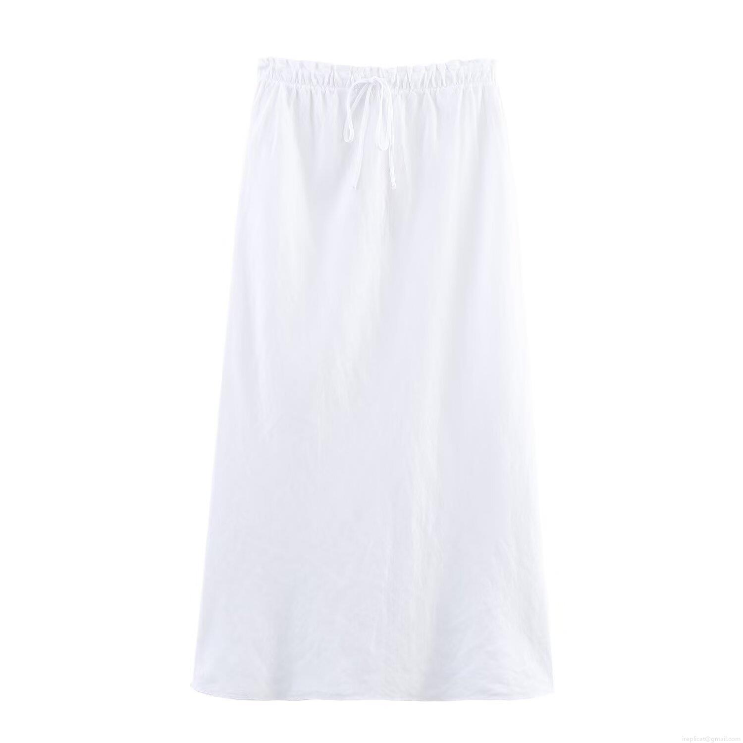 • Women's Casual Linen Blend Midi Skirt High Waist A-Line Long Skirt With Drawstring Elastic Waist For Streetwear Summer Spring Solid Color Striped Bottoms
