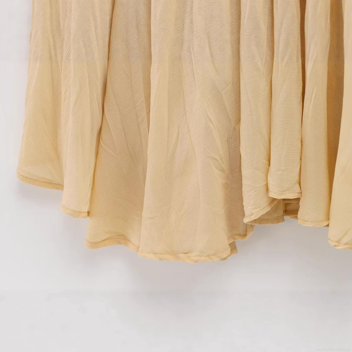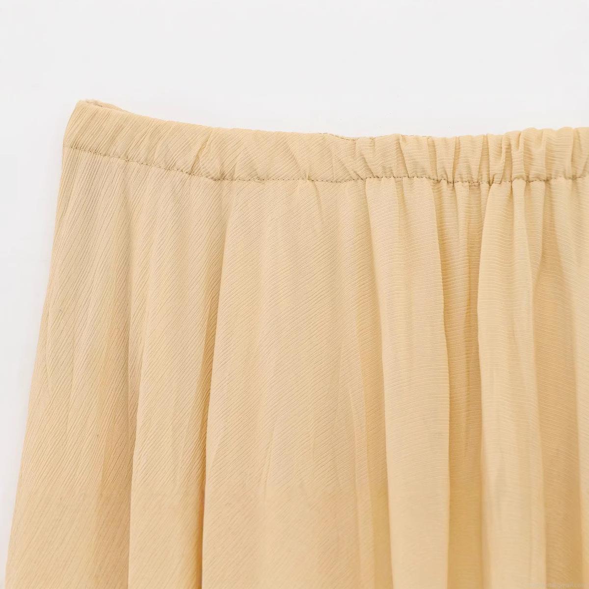 • Women's Casual Solid Color Pleated Midi Skirt Elegant Elastic High Waist Crinkled Chiffon Fabric Skirt For Spring Summer Streetwear