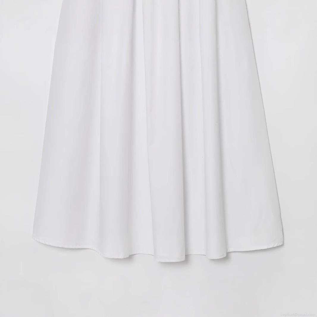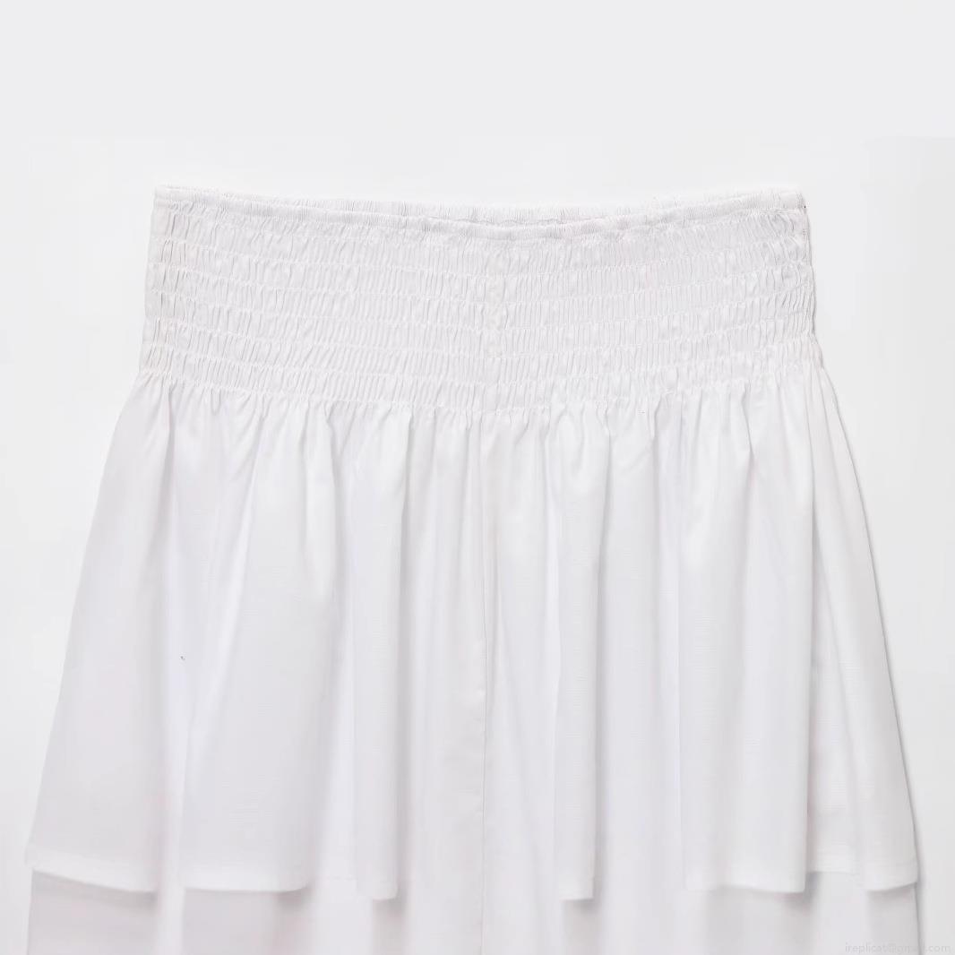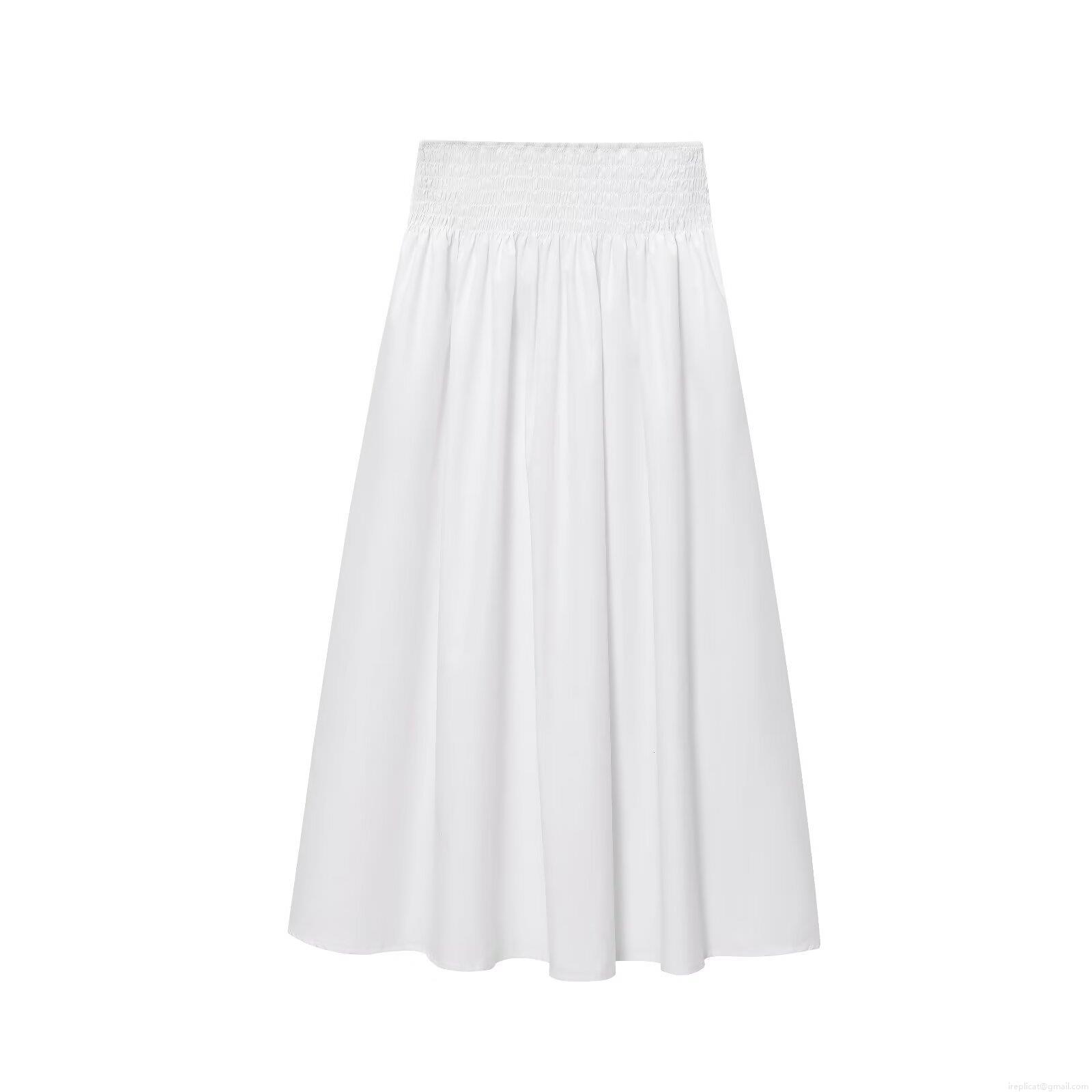 • Women's Casual Solid White Poplin Midi Skirt Elastic High Waist Smocked A-Line Maxi Skirt For Streetwear Vacation