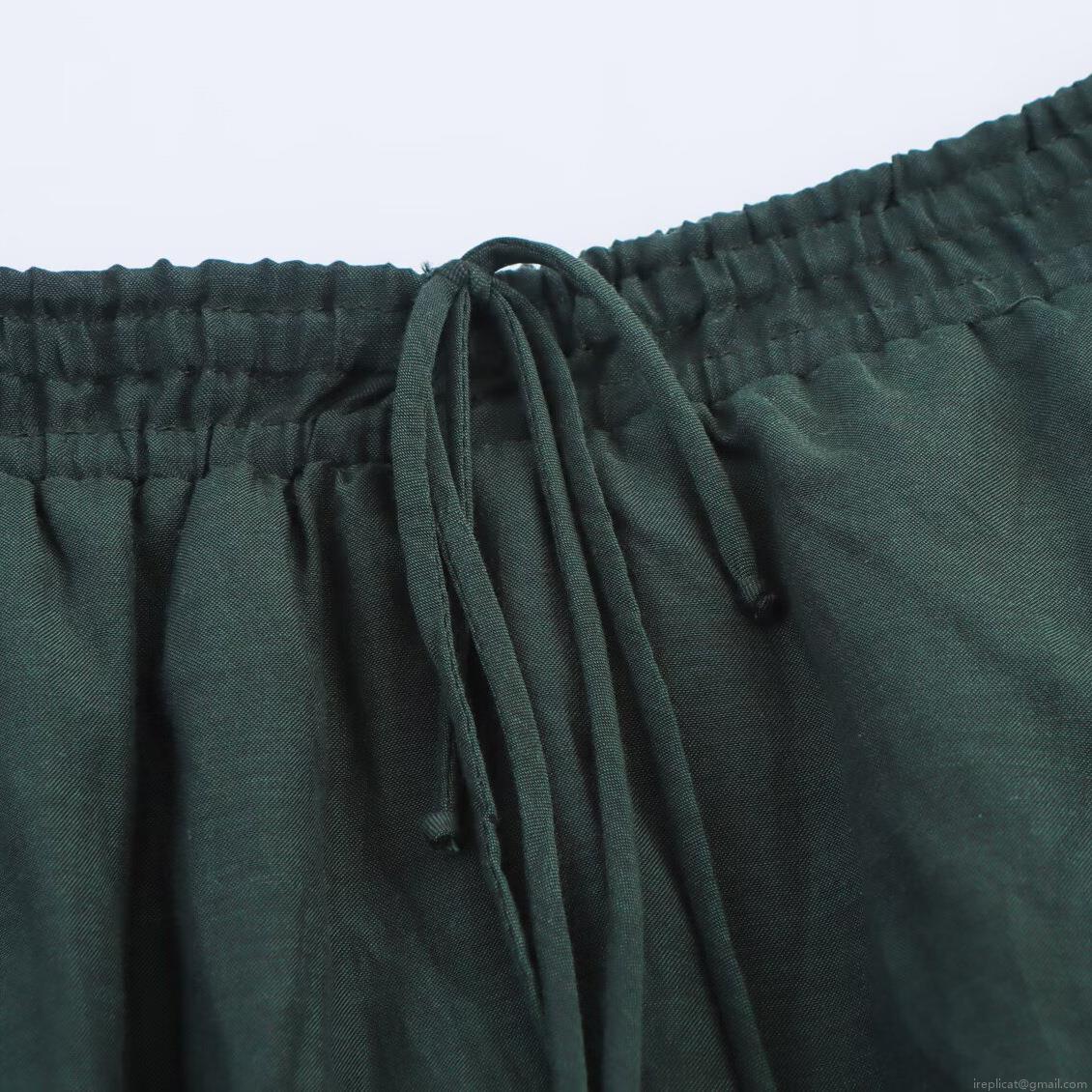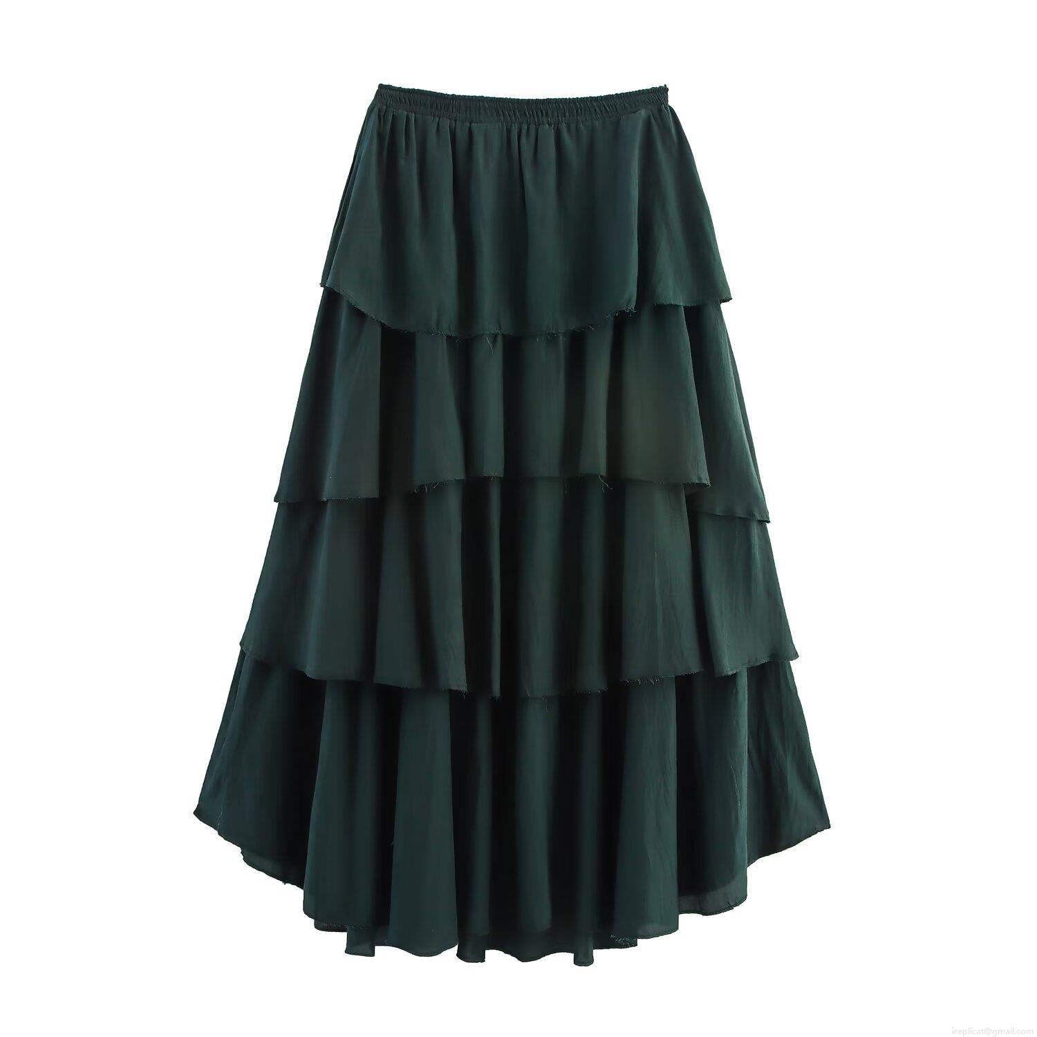 • Women's Casual Tiered Midi Skirt Dark Green Elastic High Waist With Drawstring 4-Layer Cake Skirt Flowy Polyester Skirt For Women Daily Vacation