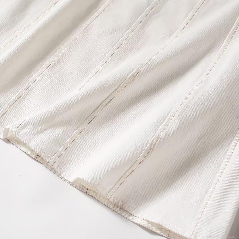 Solid Color, Topstitching, Twill Texture, A-line Style